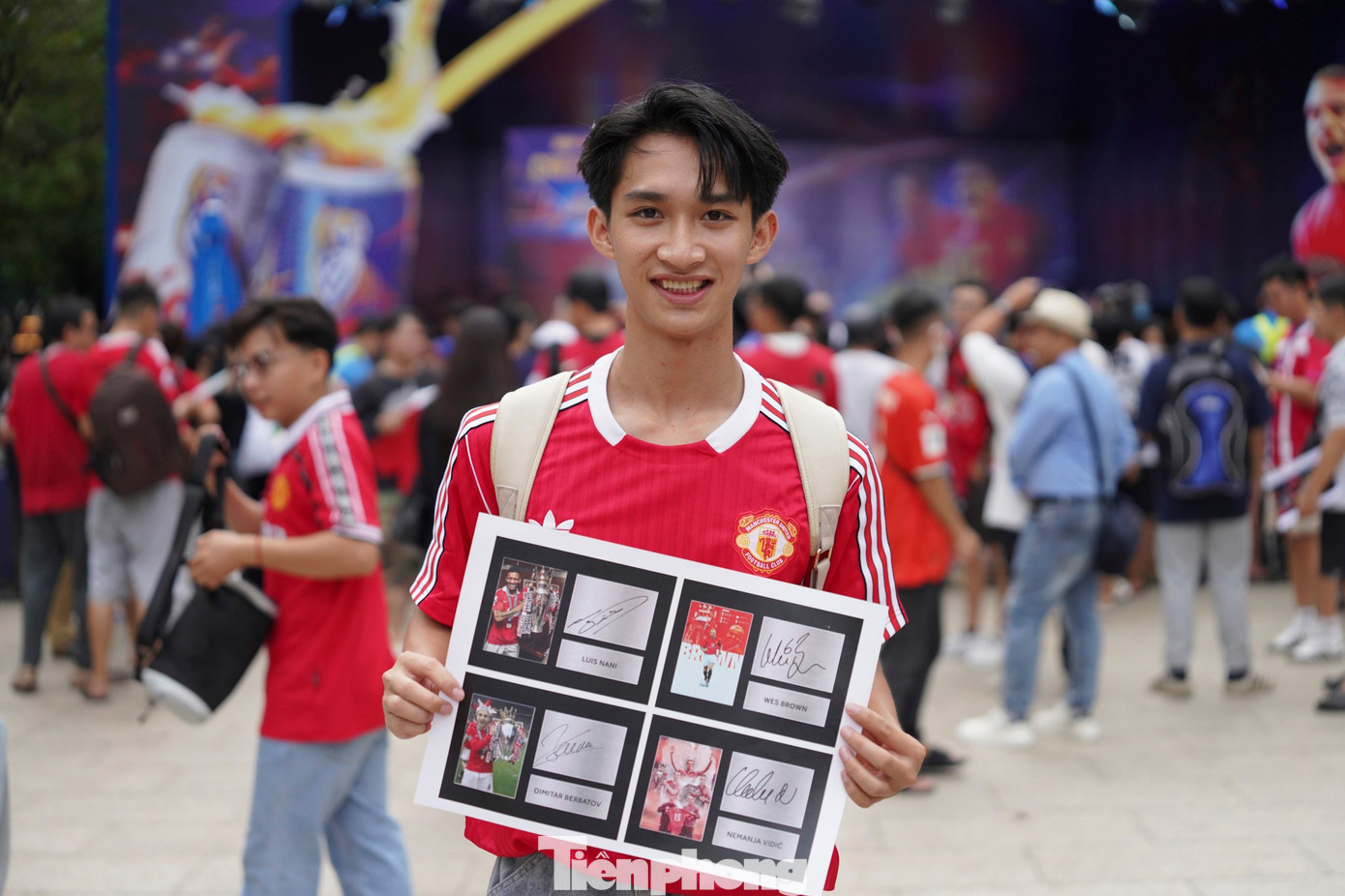Nhiều bạn trẻ tự nghĩ ra những vật dụng có thể lưu chữ ký của những thần tượng theo cách riêng. Có bạn in ảnh, có bạn săn quả bóng màu MU...Tất cả đều cùng hướng sự hâm mộ các thần tượng không biên giới. Bạn Trần Đoàn Quốc Đạt (ngụ Quận 3 cũ) xúc động: "Không thể tin được là tấm ảnh có bốn thần tượng được cả bốn chữ ký, món quà này với em là vô giá. Em đã tự tay chọn ảnh, thiết kế và in. Bên cạnh đó, em theo dõi sát sao hành trình của 4 cầu thủ, hôm qua em cũng sân bay đón mà không kịp".
