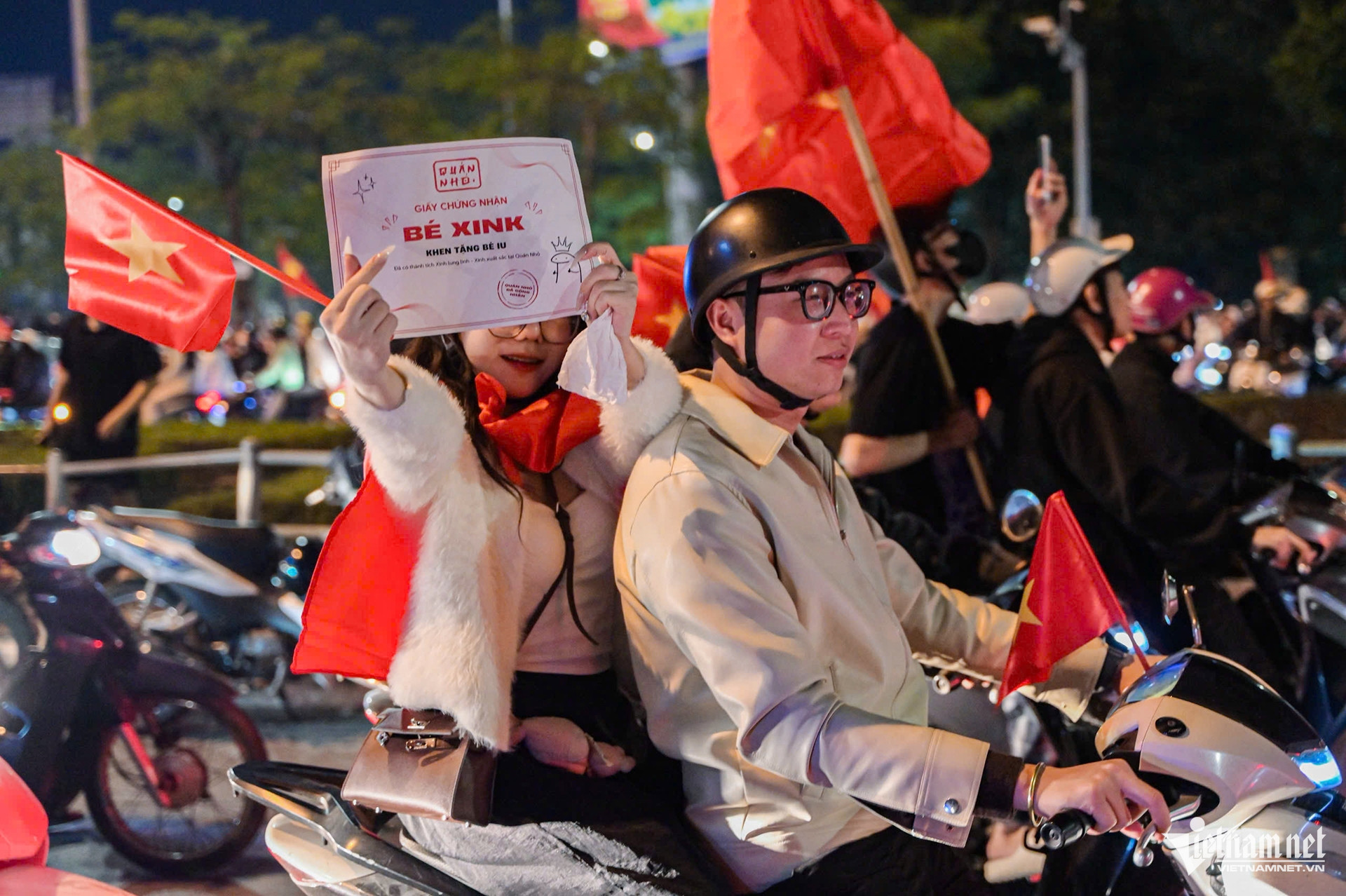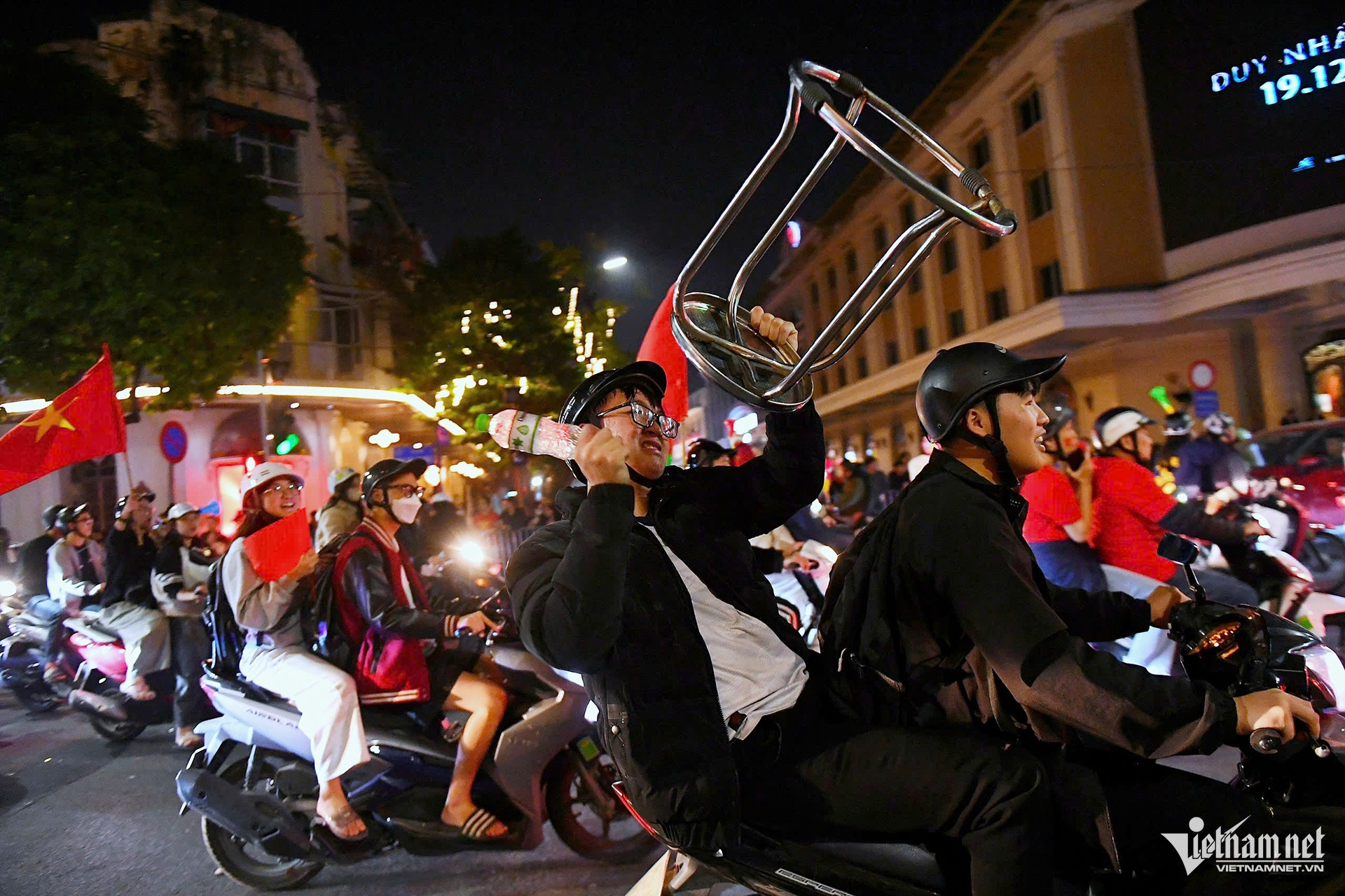Tại khu vực các tuyến phố Đinh Tiên Hoàng, Tràng Tiền, Hàng Khay... người hâm mộ mang bất cứ đồ vật gì có thể để giơ lên cao khuấy động phong trào.
