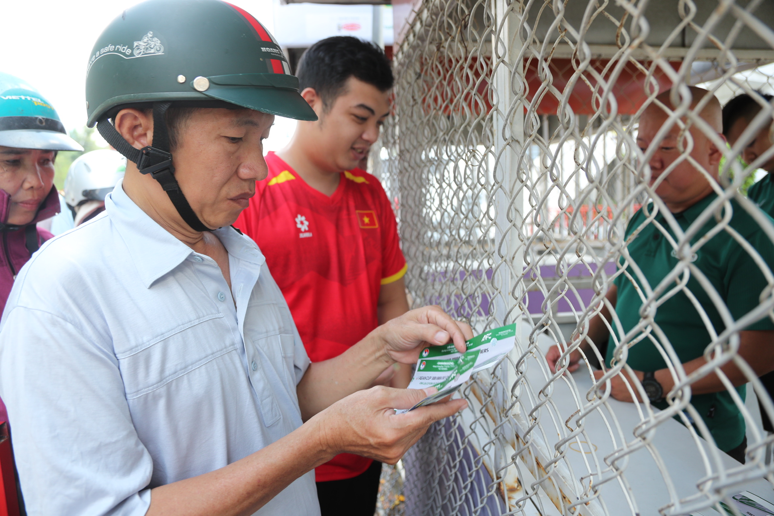 Cổ động viên Trần Hoài Tưởng háo hức cầm vé trên tay. ẢNH: TÂM HÀ