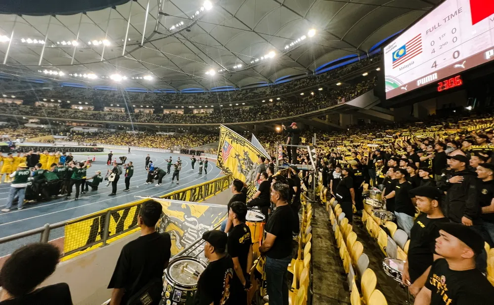 Người hâm mộ Malaysia cổ vũ cuồng nhiệt cho đội tuyển quốc gia trong trận thắng Việt Nam 4-0 ở vòng loại Asian Cup 2027 vào ngày 10-6. Ảnh: TNST.