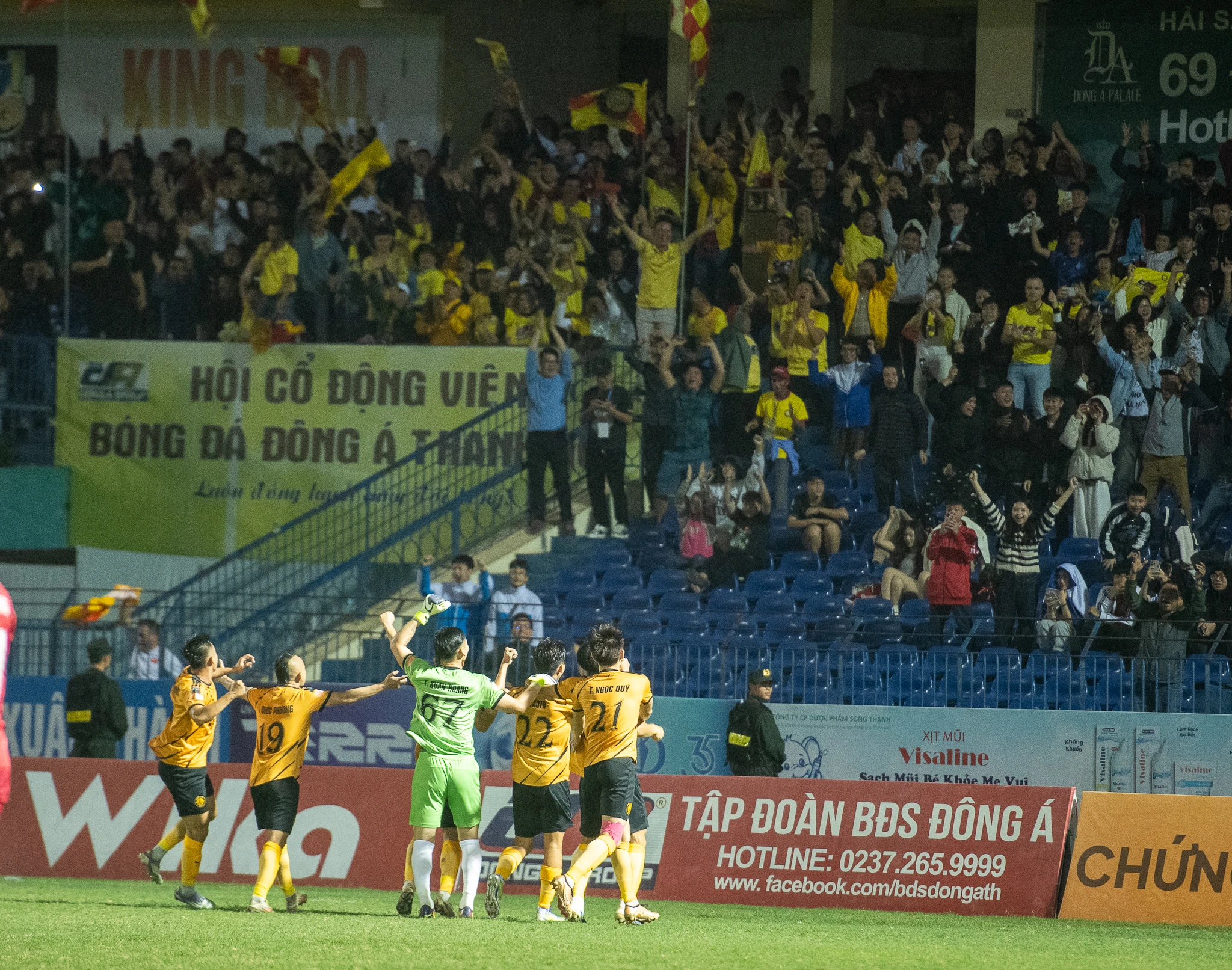 Trong suốt 90 phút, mỗi pha tranh chấp quyết liệt của các cầu thủ Đông Á Thanh Hóa đều nhận được những tràng vỗ tay, hò reo không ngớt. Khi đội chủ nhà vươn lên dẫn trước trong hiệp 1, cả khán đài như bùng nổ, tiếp thêm nguồn năng lượng tinh thần mạnh mẽ cho thầy trò HLV Mai Xuân Hợp.
