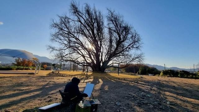 Bất kỳ ai đã từng đến thăm cây bạch quả này trong thời gian gần đây có thể đã vô tình gặp họa sỹ Choi Seon-gil, 63 tuổi, người đã đến thăm địa điểm này gần như hàng ngày trong sáu năm để ghi lại hình ảnh cây này trên khung vải.