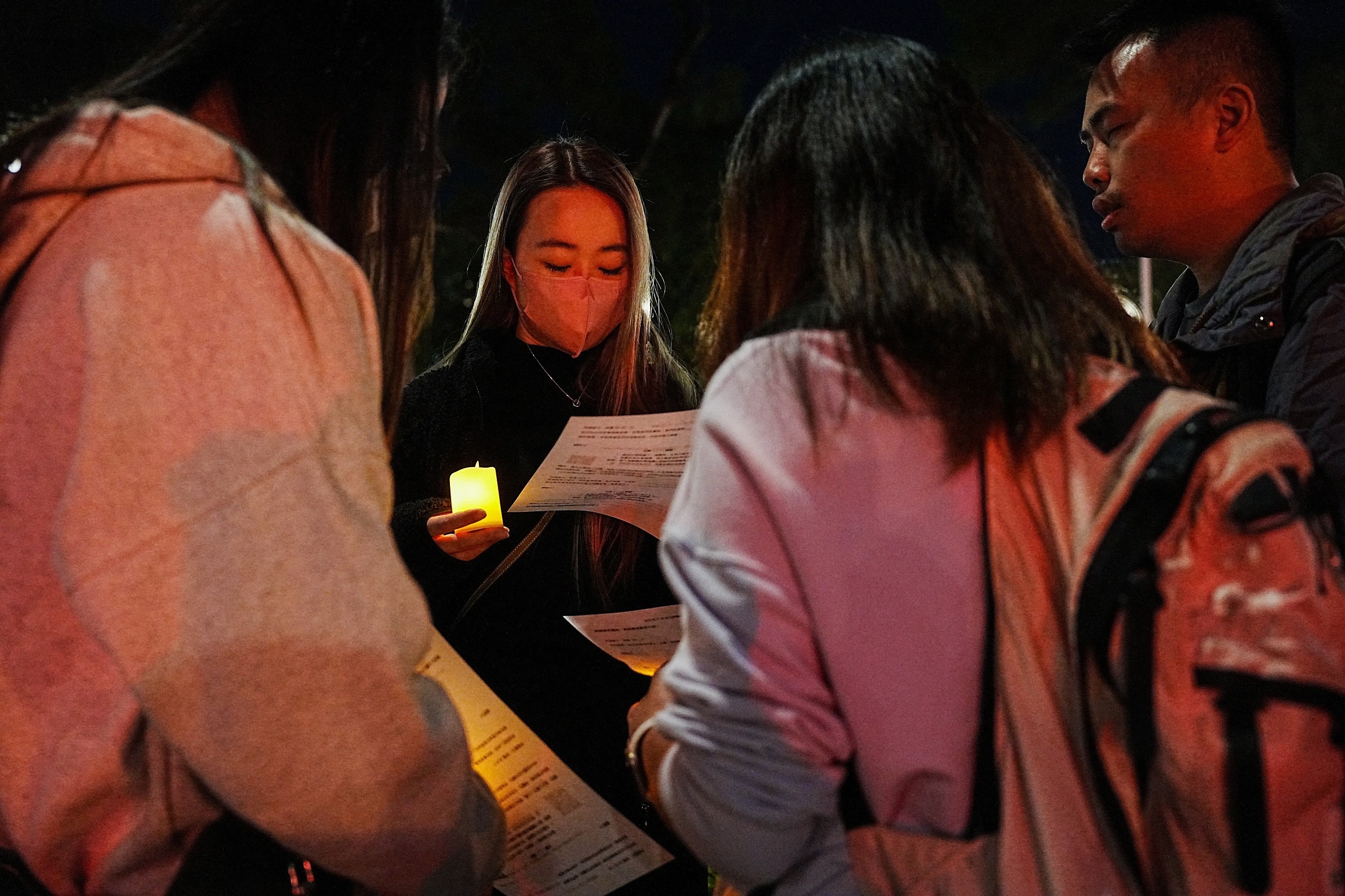 Tối 28/11, nhiều người dân tập trung trước khu chung cư Wang Fuk Court để cùng thắp nến và cầu nguyện cho các nạn nhân xấu số.