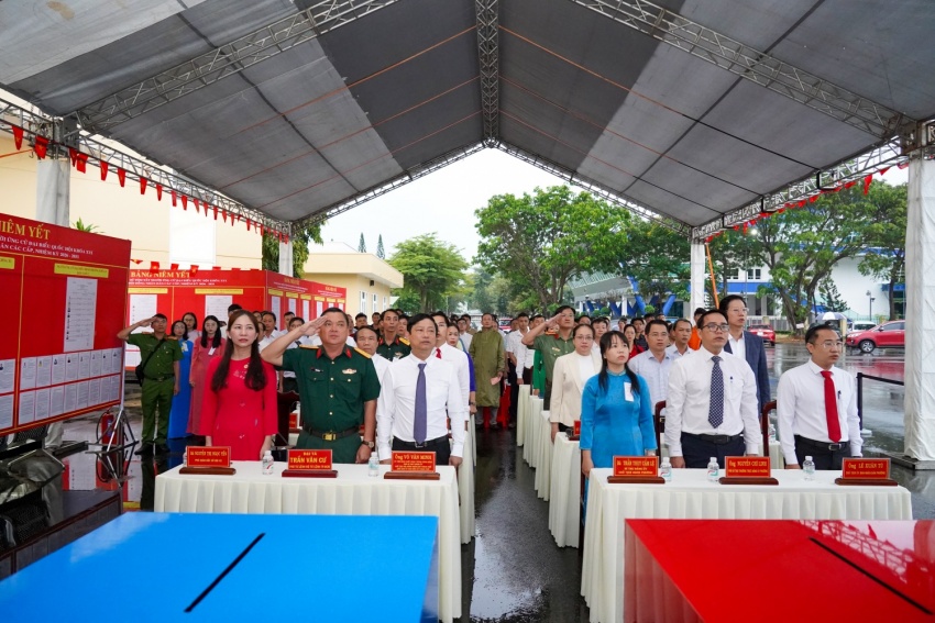 Đại biểu và cử tri thực hiện nghi thức chào cờ.