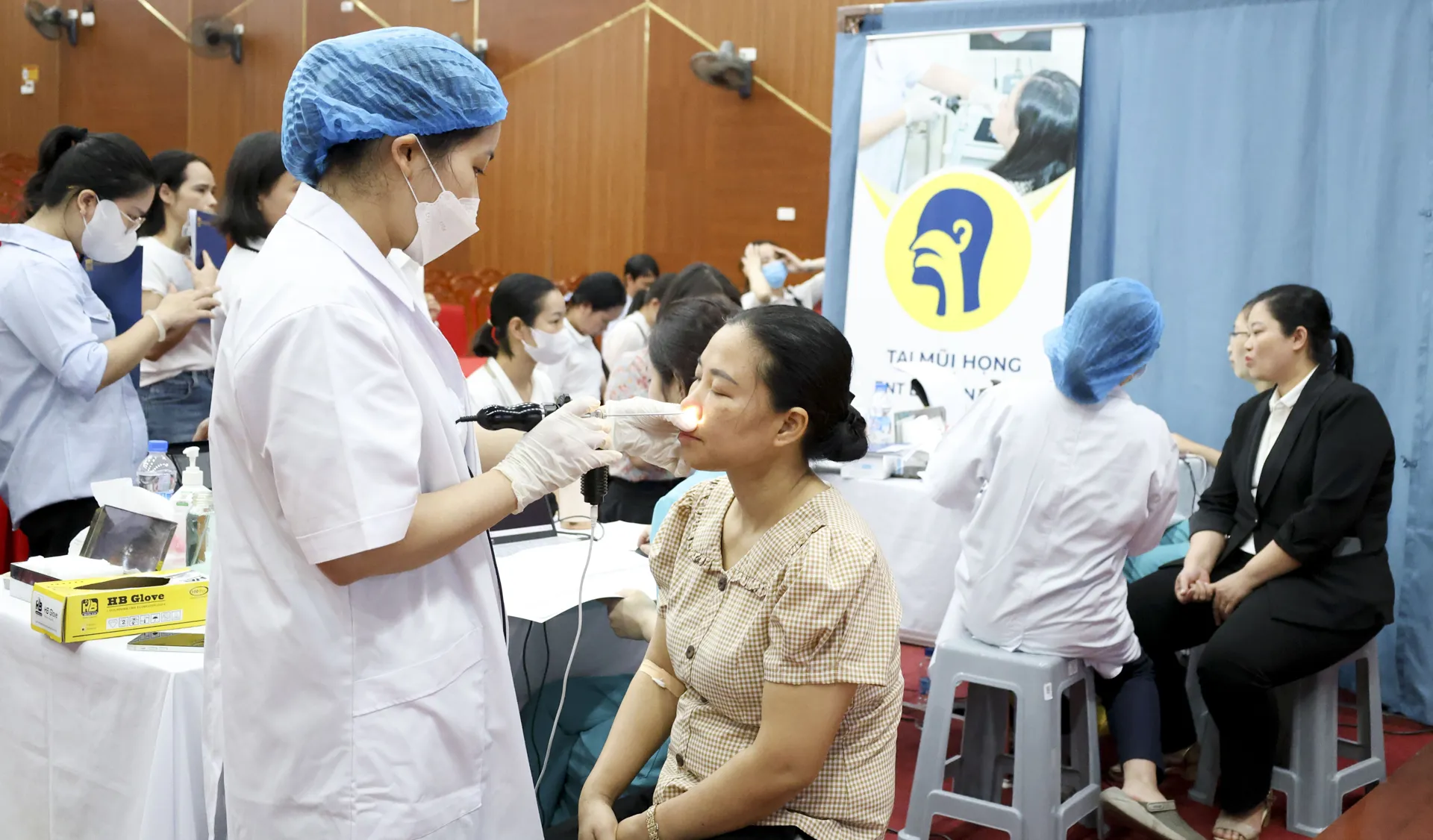 Người lao động được khám sức khỏe tại Lễ phát động Tháng hành động về An toàn vệ sinh lao động và Tháng Công nhân TP Hà Nội năm 2025. Ảnh: LĐTĐ