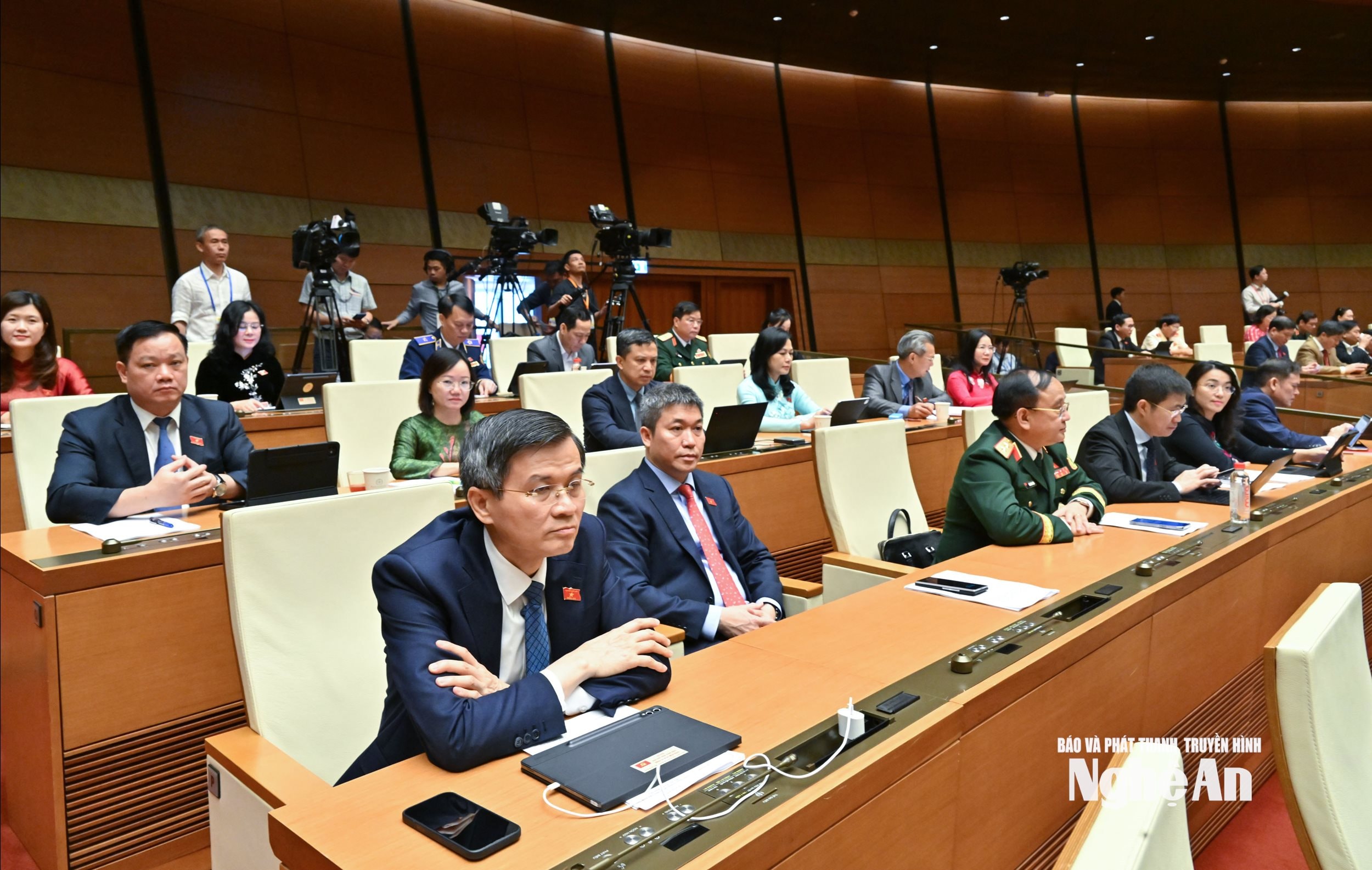 Đoàn ĐBQH tỉnh Nghệ An dự phiên họp. Ảnh: Viết Chung