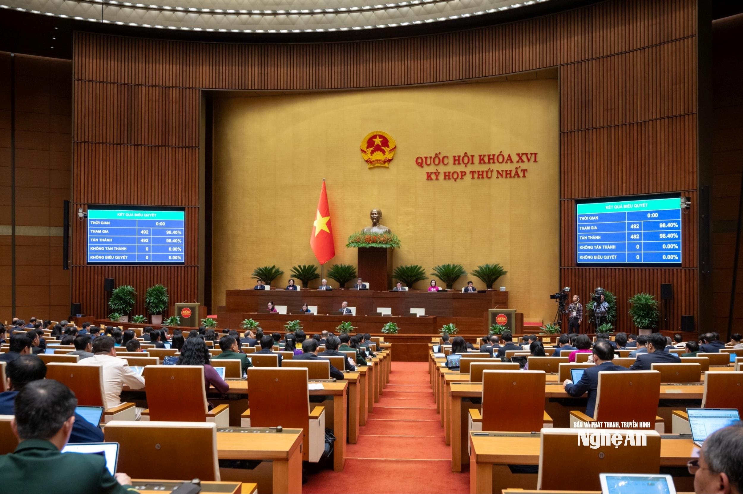 Quốc hội biểu quyết thông qua các dự án luật, dự thảo nghị quyết quan trọng.