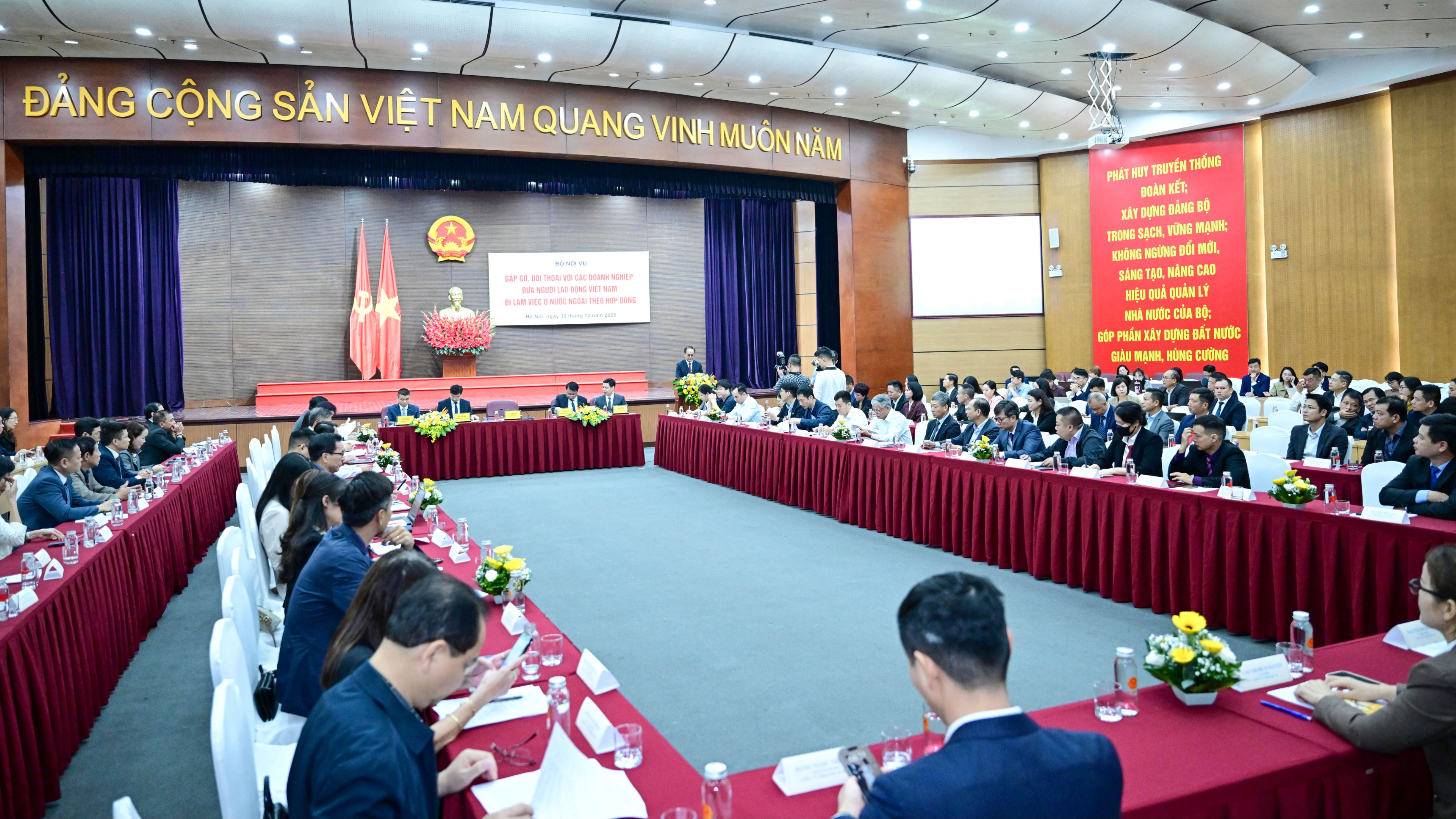 Hội nghị có hơn 100 doanh nghiệp hoạt động trong lĩnh vực xuất khẩu lao động cùng dự. Ảnh: ĐỖ TRUNG