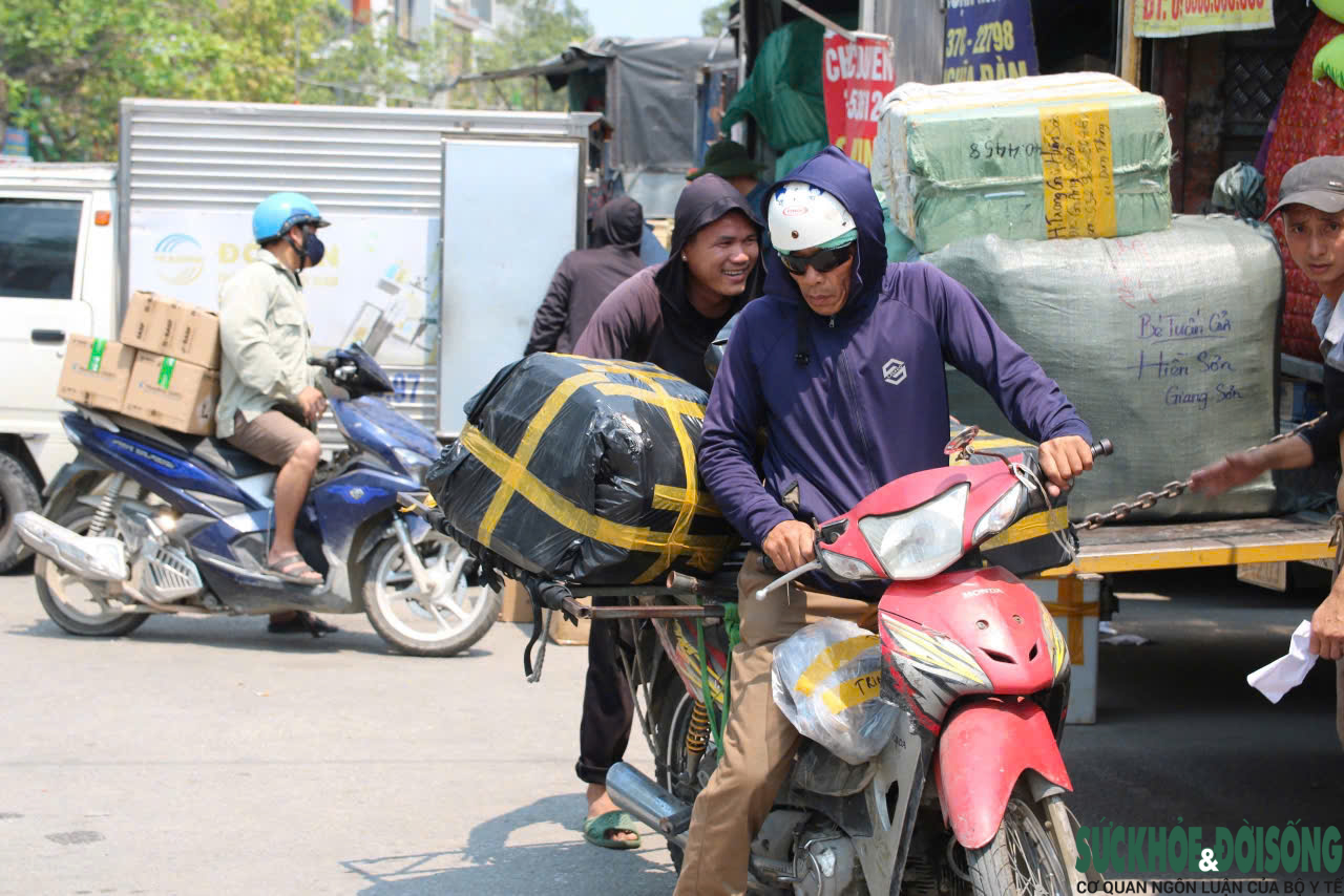 Tại khu vực bến xe chợ Vinh, nhiều lao động vẫn miệt mài bốc dỡ hàng hóa dưới cái nắng như thiêu đốt. Áo quần ướt sũng, khẩu trang thấm mồ hôi, họ làm việc xuyên trưa để kịp chuyến hàng. Giữa "tứ bề nóng" nắng trên đầu, hơi nóng từ mặt đường và khói xe phả lên. "Có hôm chạy liên tục, mắt tối sầm, miệng khô khốc", ông Hùng kể. Nhưng với ông, có việc làm đã là may mắn.