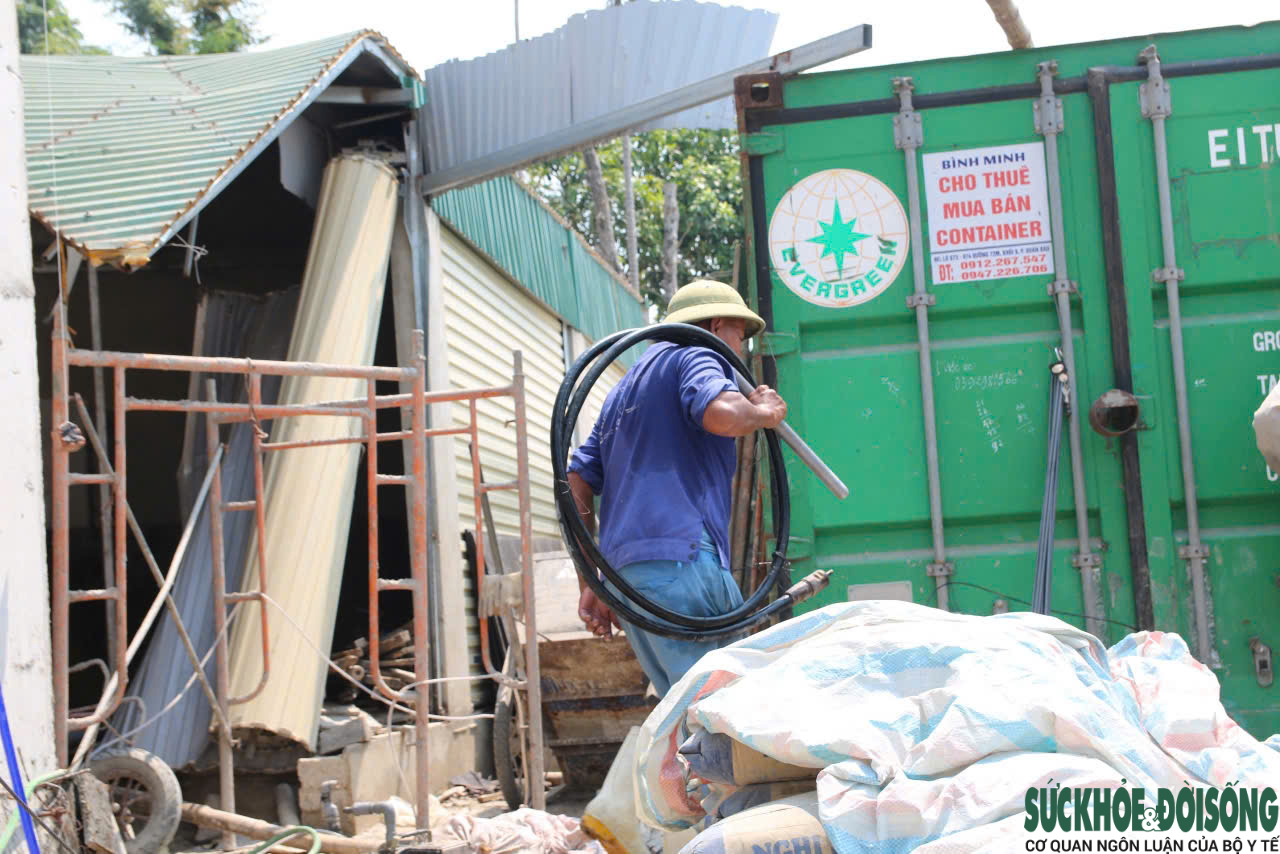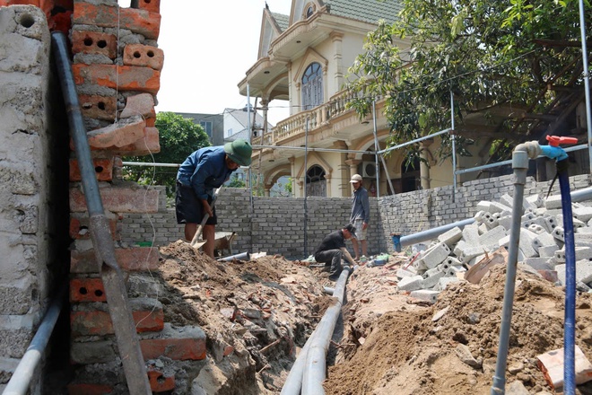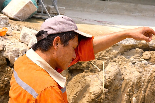 "Trời nắng quá nên cố đi sớm, trưa nghỉ sớm hơn. Nhưng công trình khoán, phải chạy tiến độ nên cũng không tránh được lúc nắng gắt", ông Sinh nói và cho biết mỗi ngày phải uống vài lít nước, người lúc nào cũng ướt đẫm mồ hôi, tối về mệt rã rời, nhưng hôm sau vẫn phải làm tiếp.