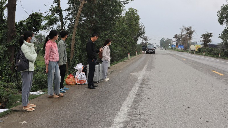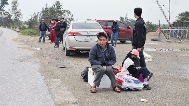 Từ sáng sớm, rất đông người dân đứng chờ xe ở gần khu vực Trạm thu phí cầu Bến Thủy 2.