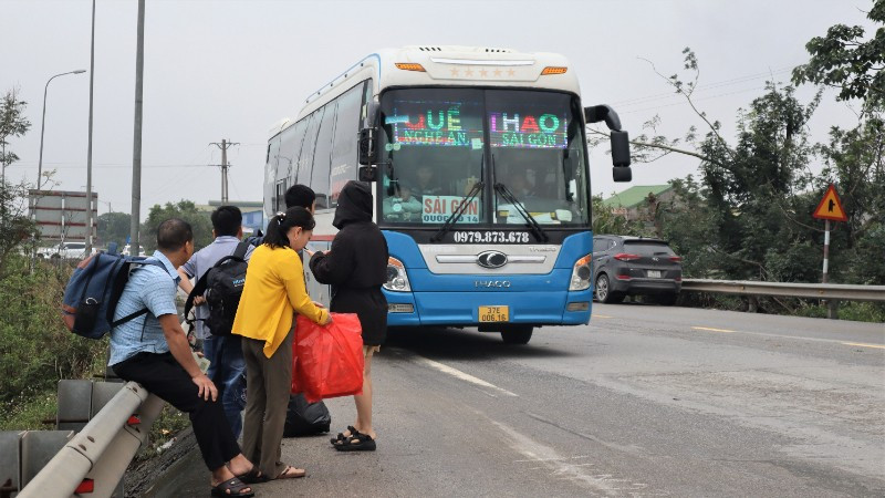 Trên tuyến đường tránh Quốc lộ 1A, đoạn đi qua địa phận xã Hưng Nguyên, dòng xe theo hướng bắc-nam tấp nập qua lại; từng nhóm người cùng hành lý chờ xe tới đón.