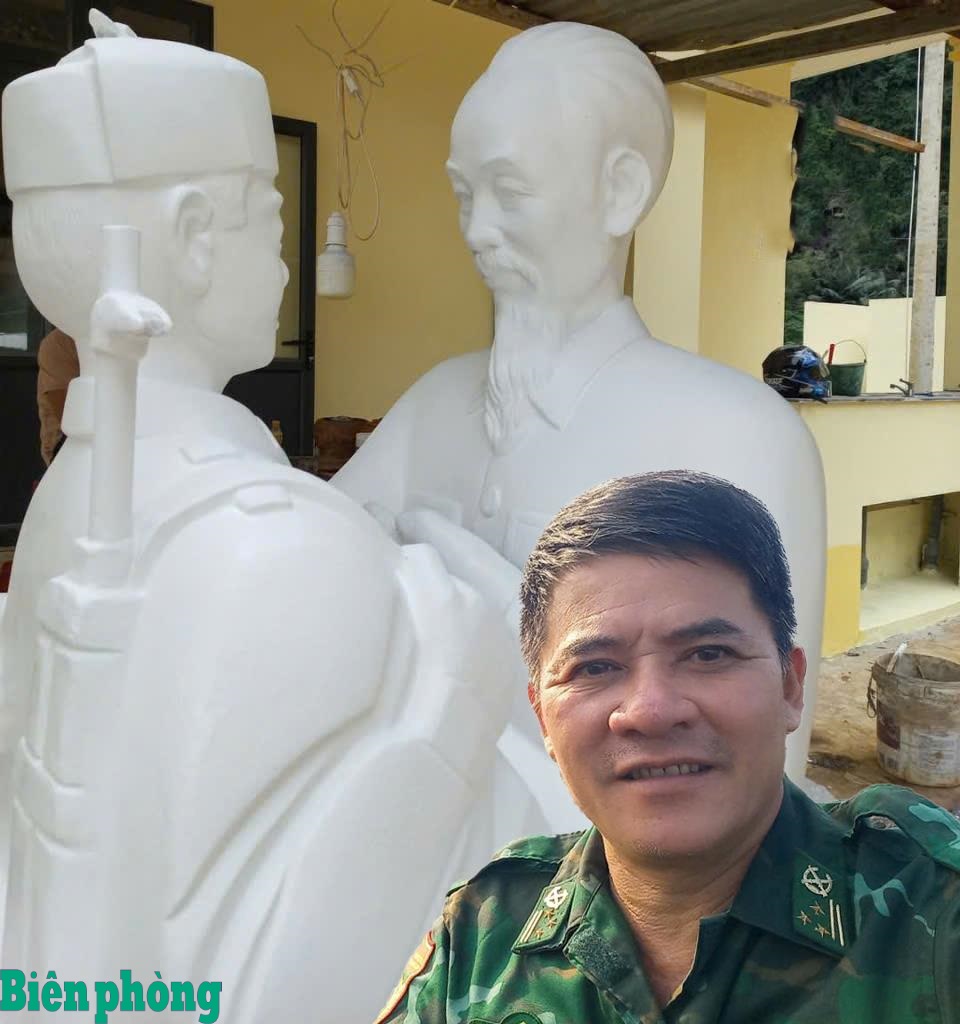 Bức tượng "Bác Hồ với chiến sĩ Biên phòng" được Thượng tá Nguyễn Thành Dũng hoàn thiện. Ảnh: Lê Văn Chương
