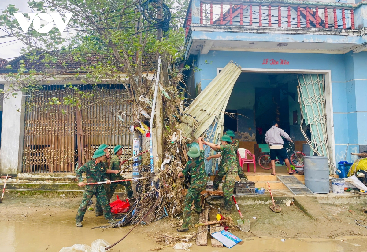 Bộ đội dọn dẹp vệ sinh môi trường sau lũ