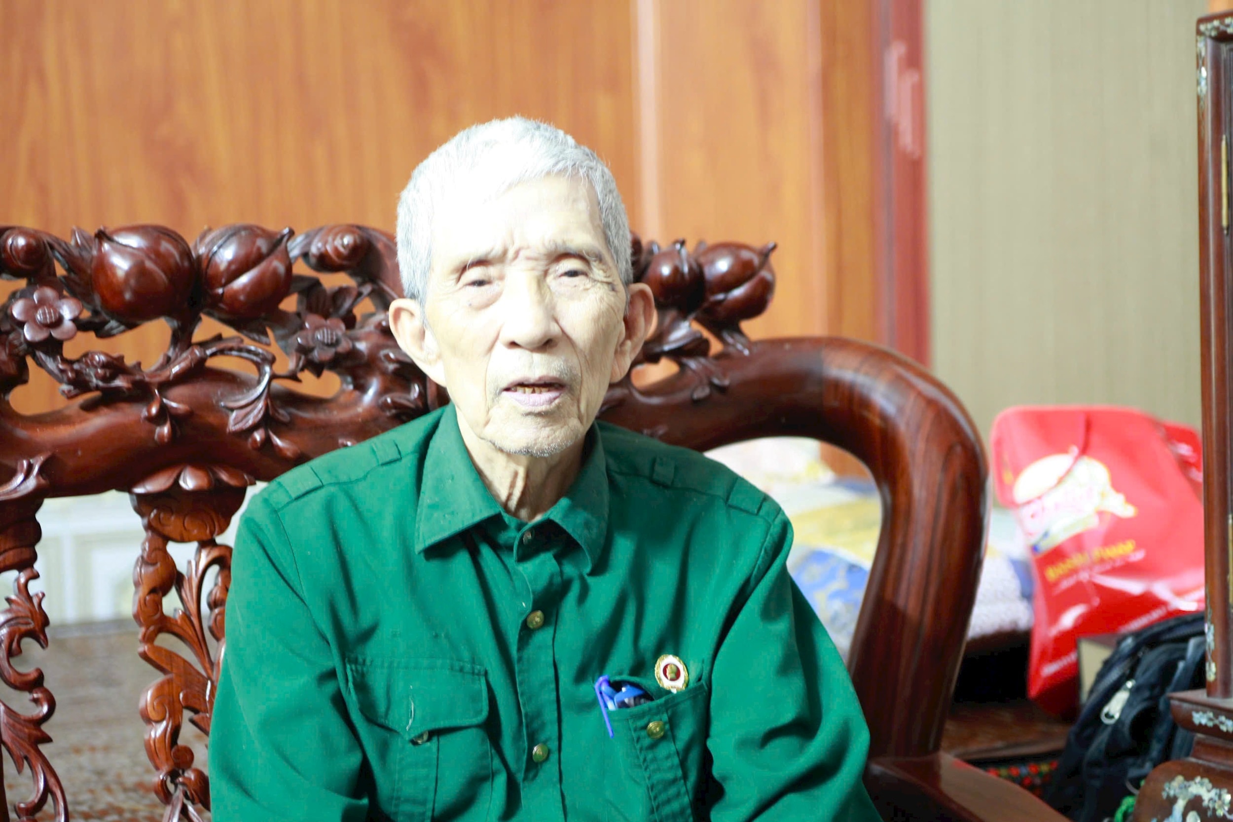 Ông Kiều Văn Uỵch bồi hồi kể lại ký ức hào hùng thời kháng chiến của mình. Ảnh: Hồng Nhung