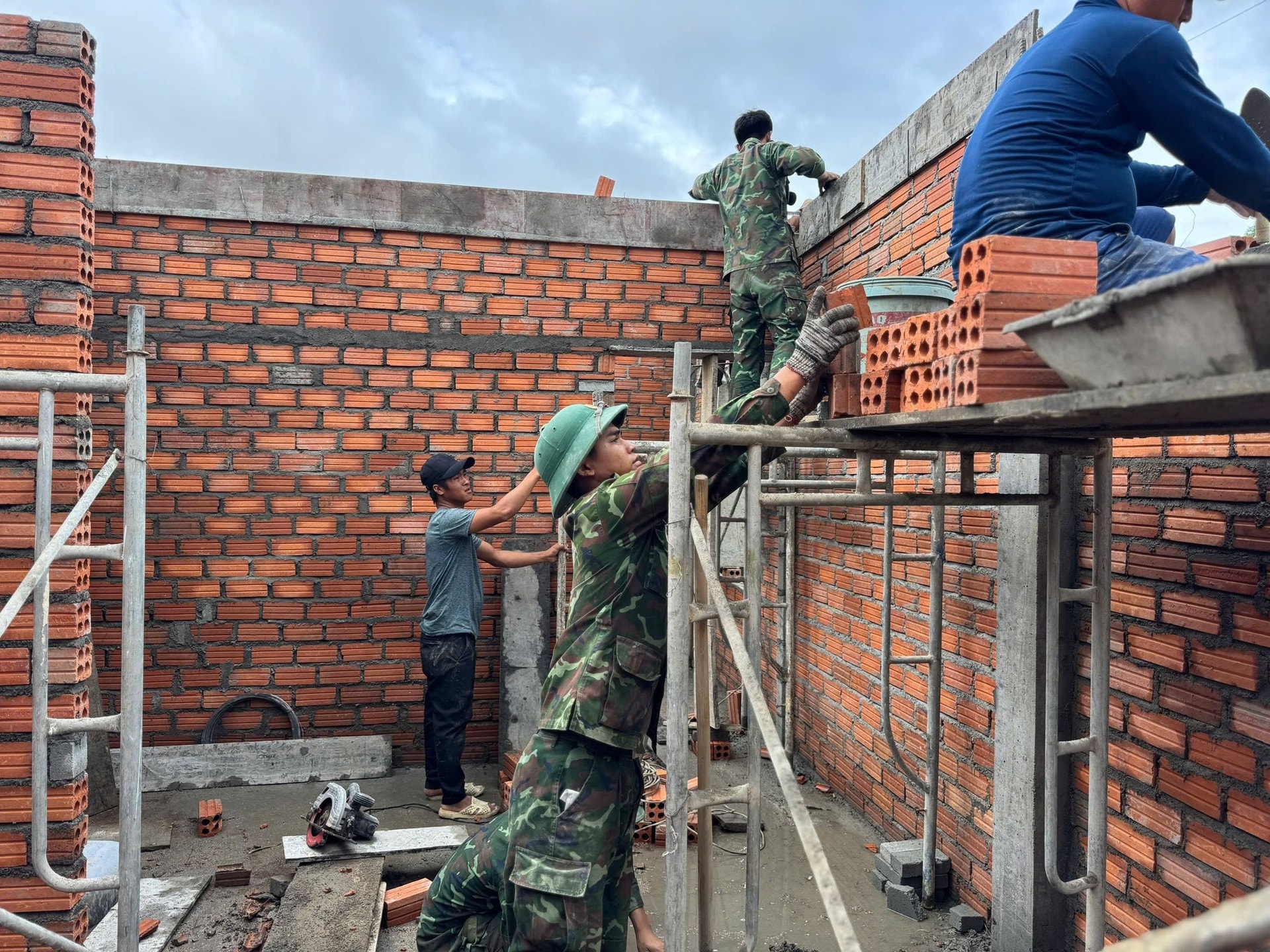 Dưới cái nắng gắt xen lẫn những cơn mưa bất chợt, cán bộ, chiến sĩ các đơn vị thuộc Sư đoàn 2 luôn bám sát công trình, chia ca, tăng giờ, làm việc liên tục từ sáng sớm đến chiều tối, thậm chí làm xuyên đêm, xuyên ngày nghỉ lễ. Từng tổ, từng đội thi công nhịp nhàng đúng thiết kế, bảo đảm ngôi nhà chắc chắn, an toàn và phù hợp với điều kiện sinh hoạt của người dân địa phương.