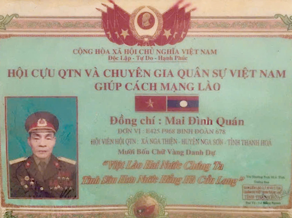 Đó là cựu chiến binh (CCB) Mai Đình Quán, nguyên Bệnh xá trưởng Trung đoàn 425 (Sư đoàn 968, Quân khu 4), người đã dành 16 năm thanh xuân cho nhiệm vụ quốc tế cao cả trên đất bạn Lào, hiện nghỉ hưu tại thôn Ngũ Kiên, xã Ba Đình (tỉnh Thanh Hóa).