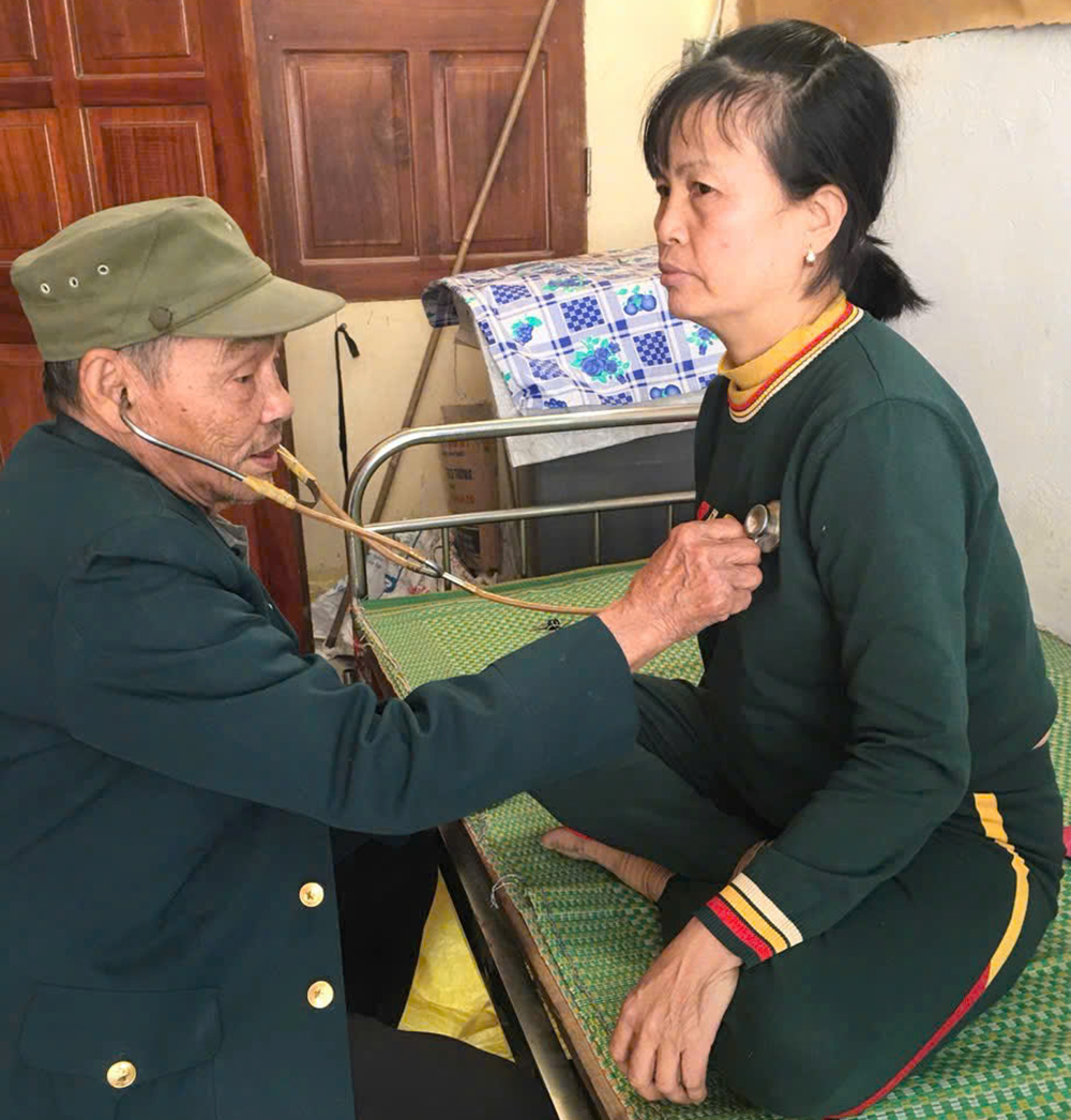 Cựu chiến binh Mai Đình Quán khám bệnh cho người dân địa phương.