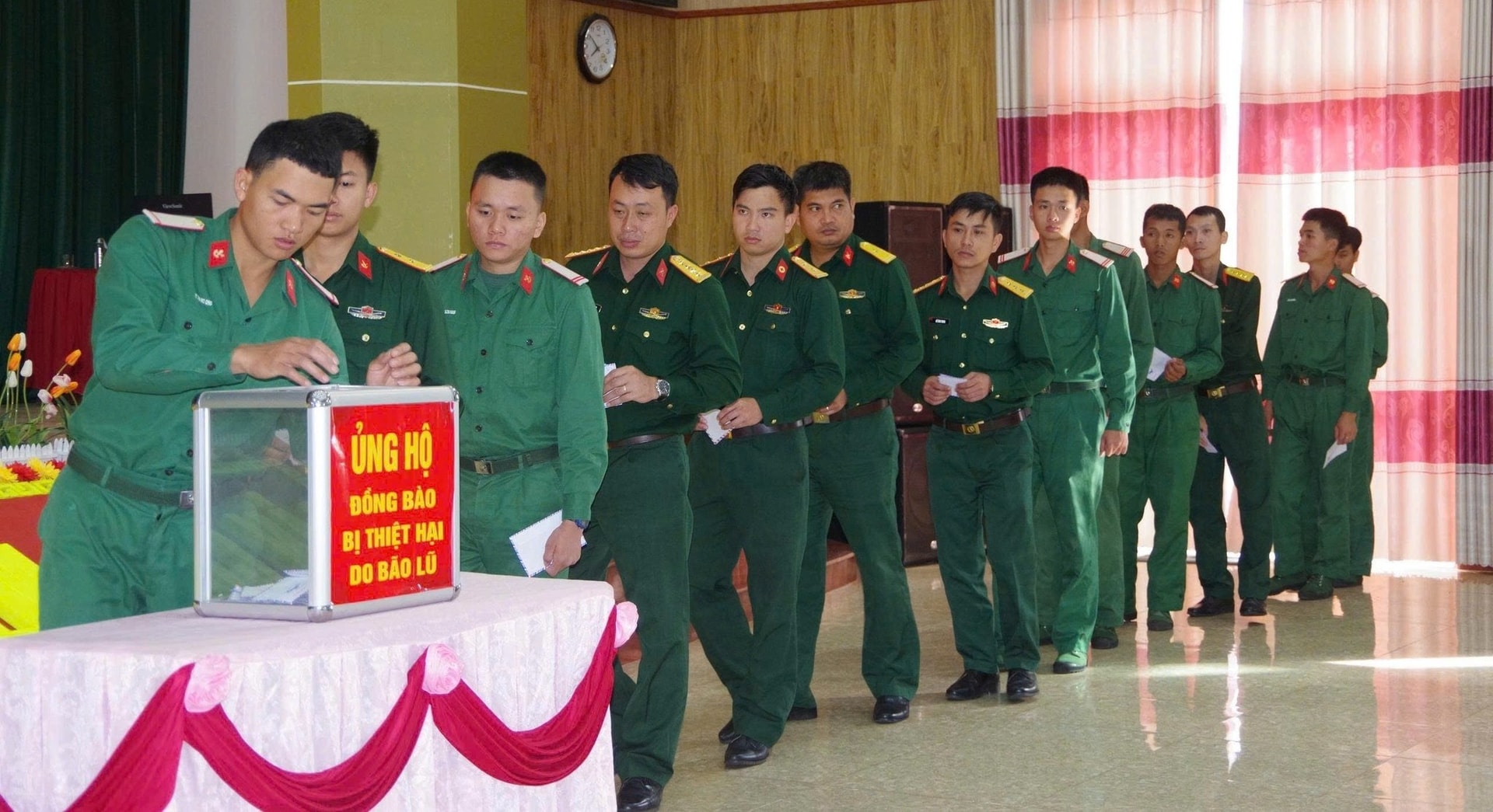 Sáng 25-11, tại Phường Thống Nhất, Tỉnh Gia Lai, Lữ đoàn 280, Quân khu 5 đã tổ chức phát động đợt quyên góp, ủng hộ đồng bào miền Trung - Tây Nguyên bị thiệt hại do bão lũ. Ảnh: M.Minh