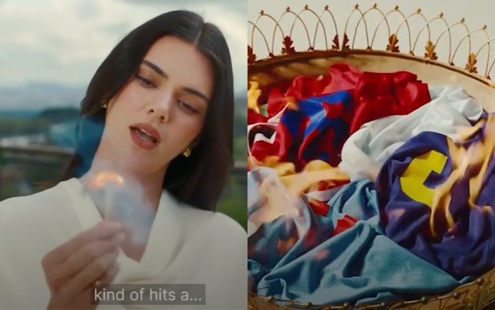 Cụ thể trong quảng cáo, nữ người mẫu xuất hiện tại một biệt thự ven biển xa hoa, khoác áo choàng sang trọng, toát lên vẻ lạnh lùng đặc trưng. Sau đó Kendall Jenner thẳng thắn nói: “Bất kỳ cầu thủ bóng rổ nào hẹn hò với tôi đều kiểu gì cũng gặp một giai đoạn sa sút”. Ngay sau câu nói này, nữ người mẫu châm diêm rồi ném vào một chiếc giỏ đầy áo bóng rổ.