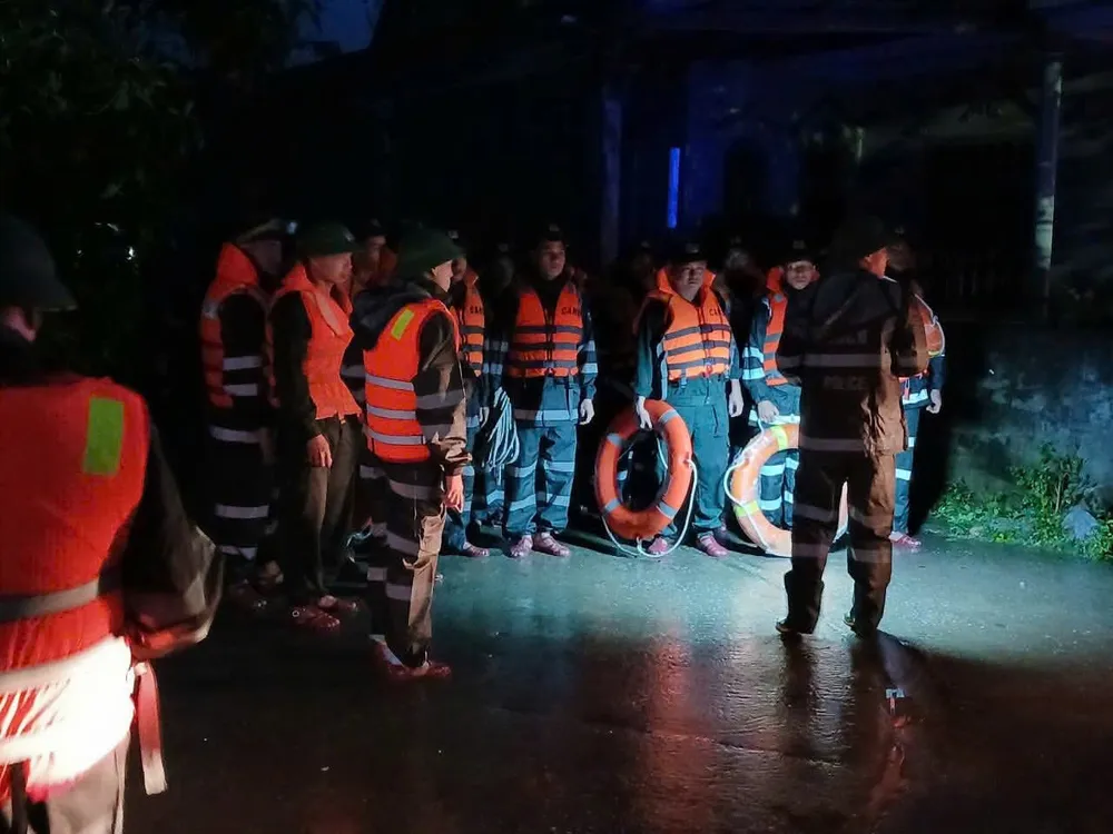 Lực lượng công an, bộ đội xuyên đêm tìm kiếm thi thể cháu bé.