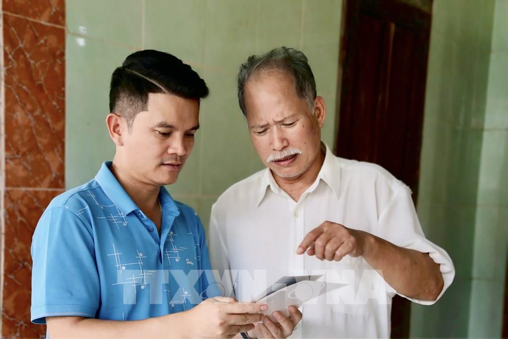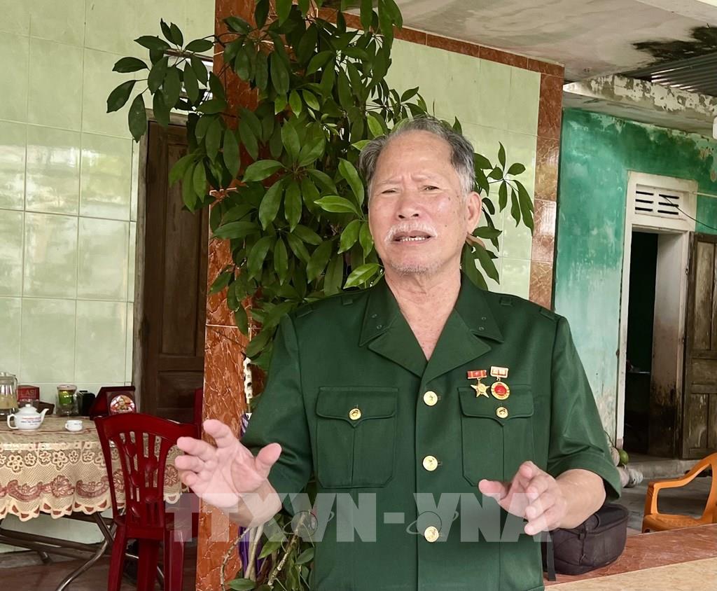 Ông Võ Xuân Khuể trao đổi với phóng viên Thông tấn xã Việt Nam về những kỷ niệm phá thủy lôi trên sông Gianh. Ảnh: TTXVN phát