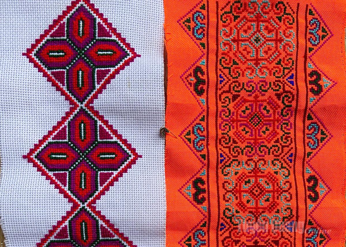 Bà Vàng Thị Say, năm nay đã hơn 80 tuổi tâm sự, trước đây bà rất thích thêu và là một trong những người thêu đẹp trong thôn. Từ đôi bàn tay khéo léo của mình, cùng với sự tỉ mỉ, cách phối màu sắc hài hòa, bà đã thêu yếm, đai váy, xà cạp cuốn chân cho bộ trang phục truyền thống của các con, các cháu. Những hoa văn đặc trưng được lựa chọn thường là hoa, cây cối, chim muông… thể hiện sự gắn bó, hòa hợp của con người với thiên nhiên.