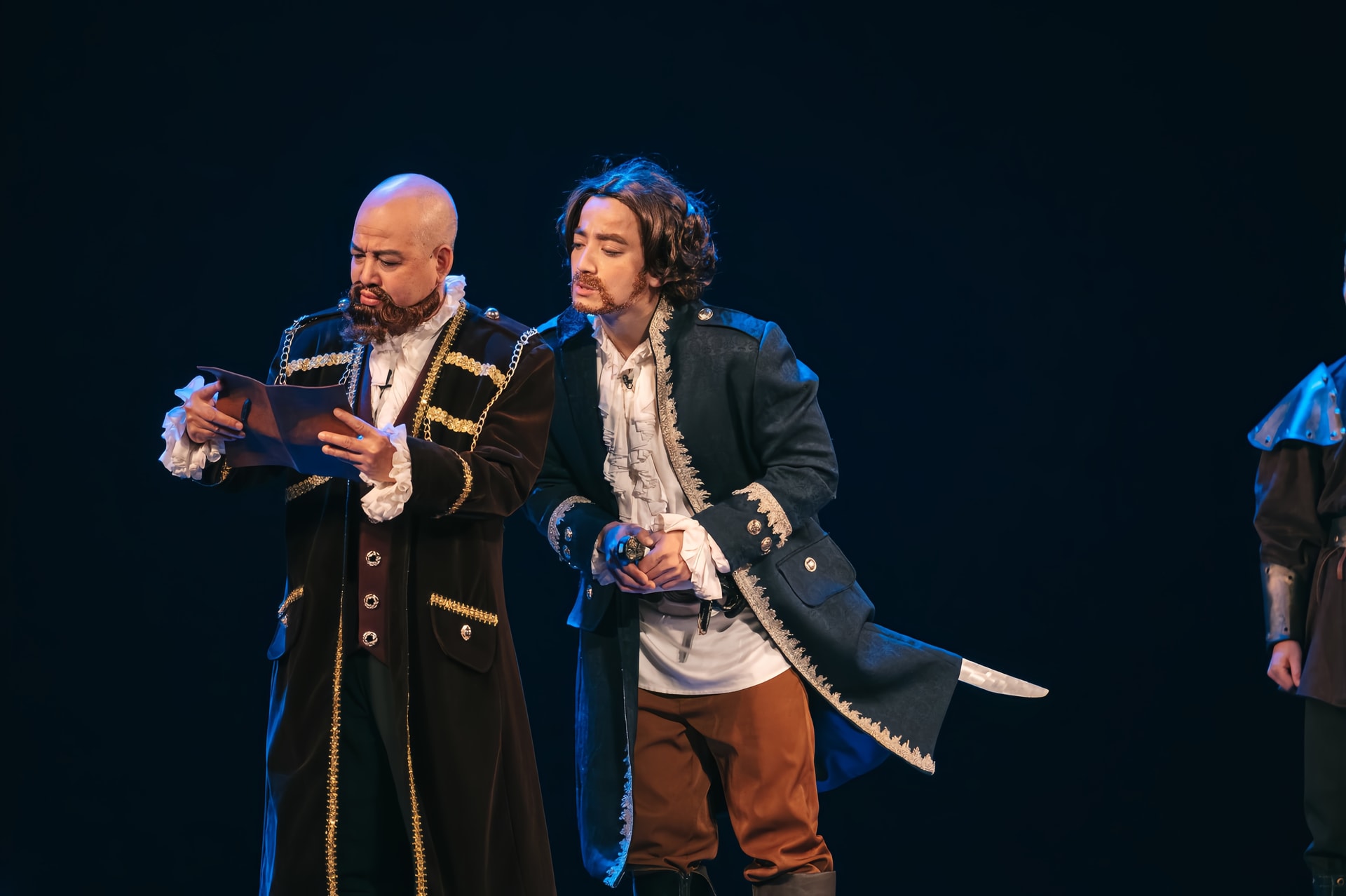 NSND Tuấn Hải (bìa trái) trong vở diễn Vua Lia - một kiệt tác sân khấu thể giới của William Shakespeare - tại Nhà hát lớn Hà Nội. Ảnh NVCC