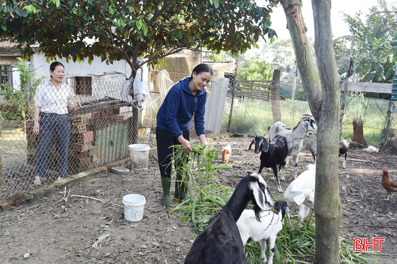 Các cấp hội phụ nữ đồng hành vượt khó với chị Nguyễn Thị Hà ở thôn Xuân Triều (áo xanh) bằng cách hỗ trợ con giống, cho vay vốn ưu đãi, hướng dẫn kỹ thuật, cho tham quan mô hình...