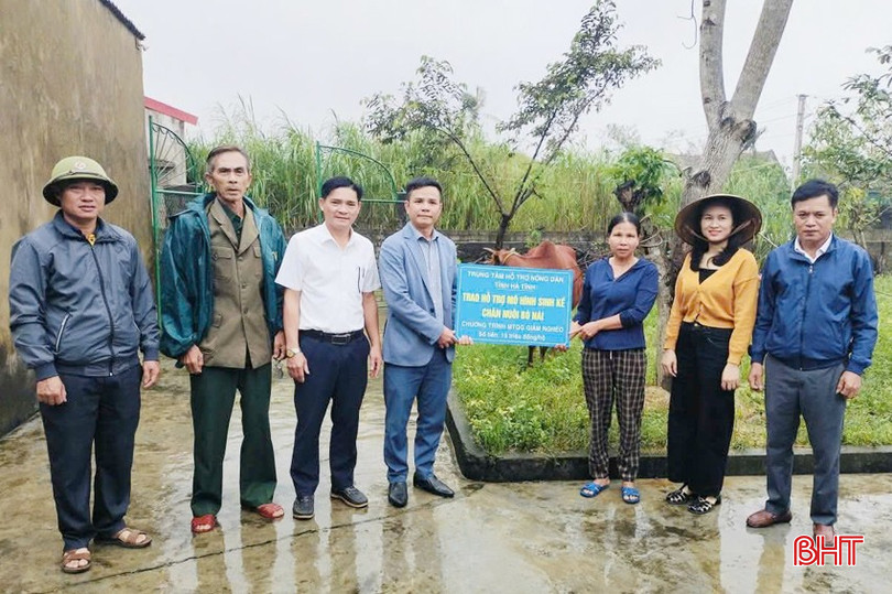 Chương trình giảm nghèo bền vững hỗ trợ bò sinh kế cho hộ cận nghèo ở thôn Hòa Bình.