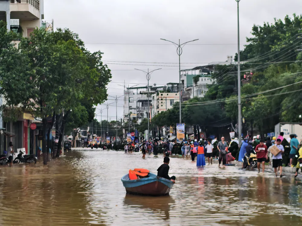 Hàng trăm nóc nhà chìm trong biển nước. Tiếng kêu cứu vang khắp, nhưng nước quá lớn không thể ứng cứu.