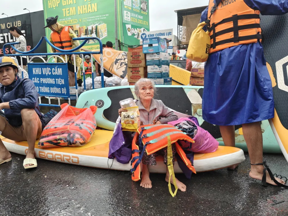 Hàng ngàn người Nha Trang sơ tán khi nước lũ lên cao kỷ lục. Ảnh: XUÂN HOÁT