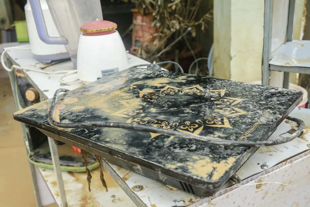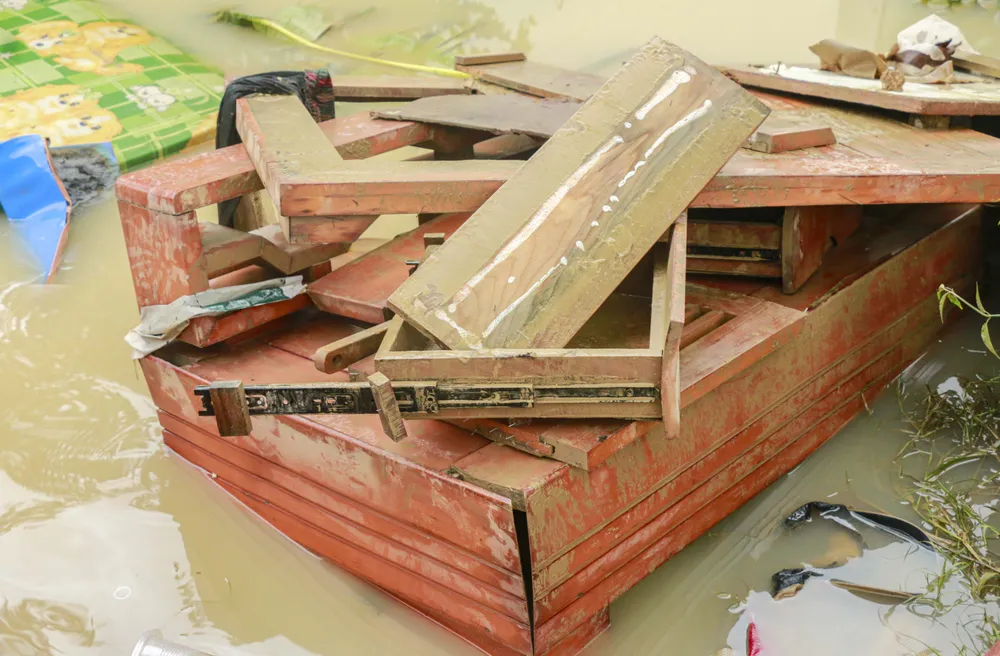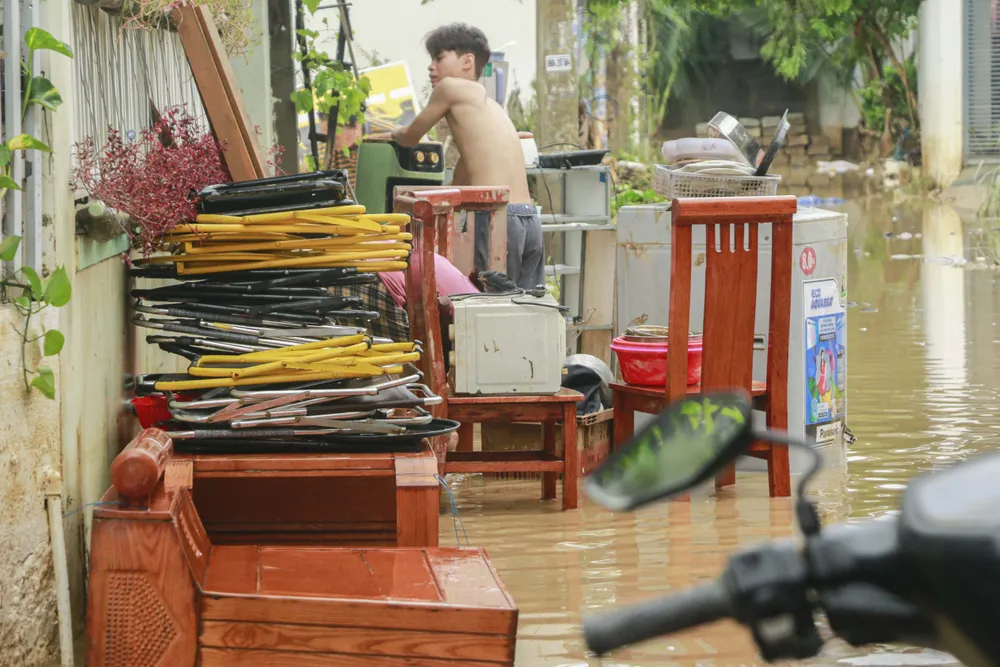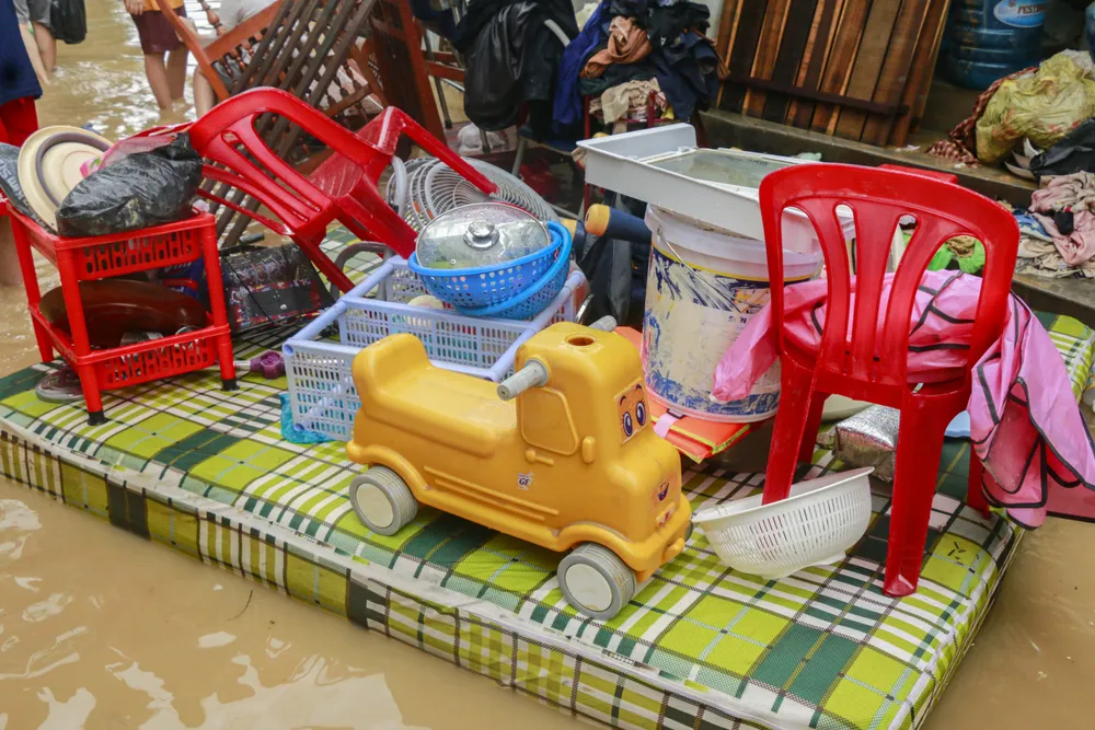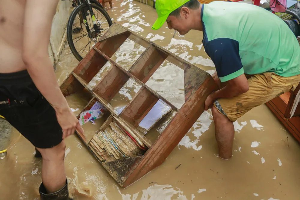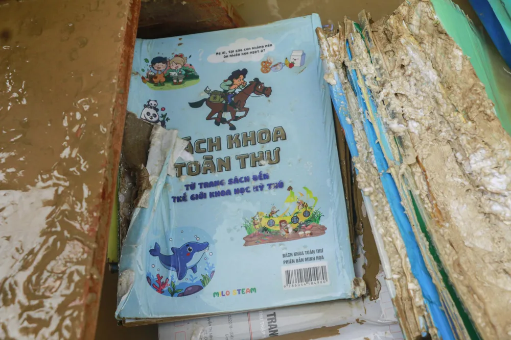 Tài sản, sách vở học tập bị dòng nước lụt nhấn chìm.