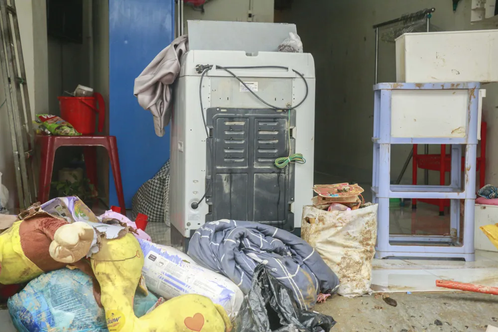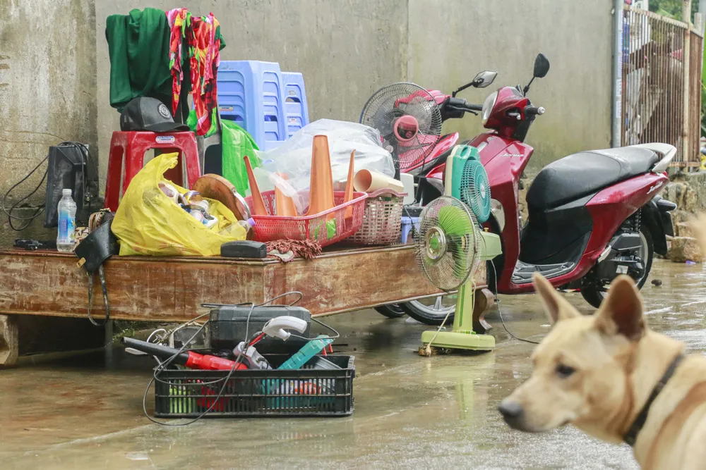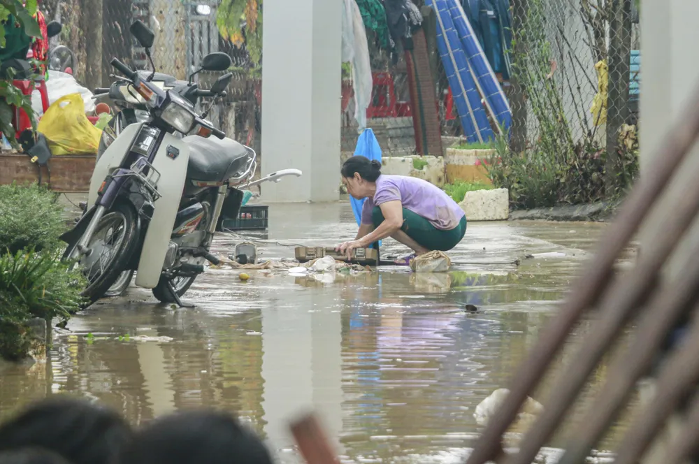 Người dân ở Nha Trang tranh thủ dọn dẹp, vớt vát những gì còn lại sau trận lụt.