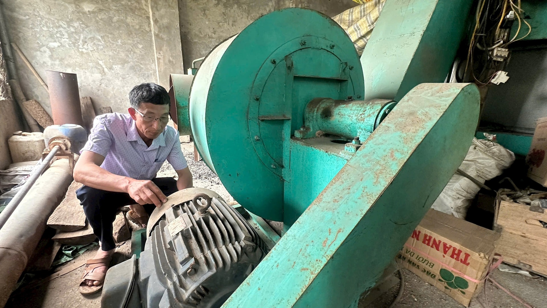 Ông Phạm Văn Vĩnh kiểm tra hệ thống máy sấy lúa ở tại gia đình sau khi hoàn thành vụ cấy xuân năm 2026. Ảnh: PV