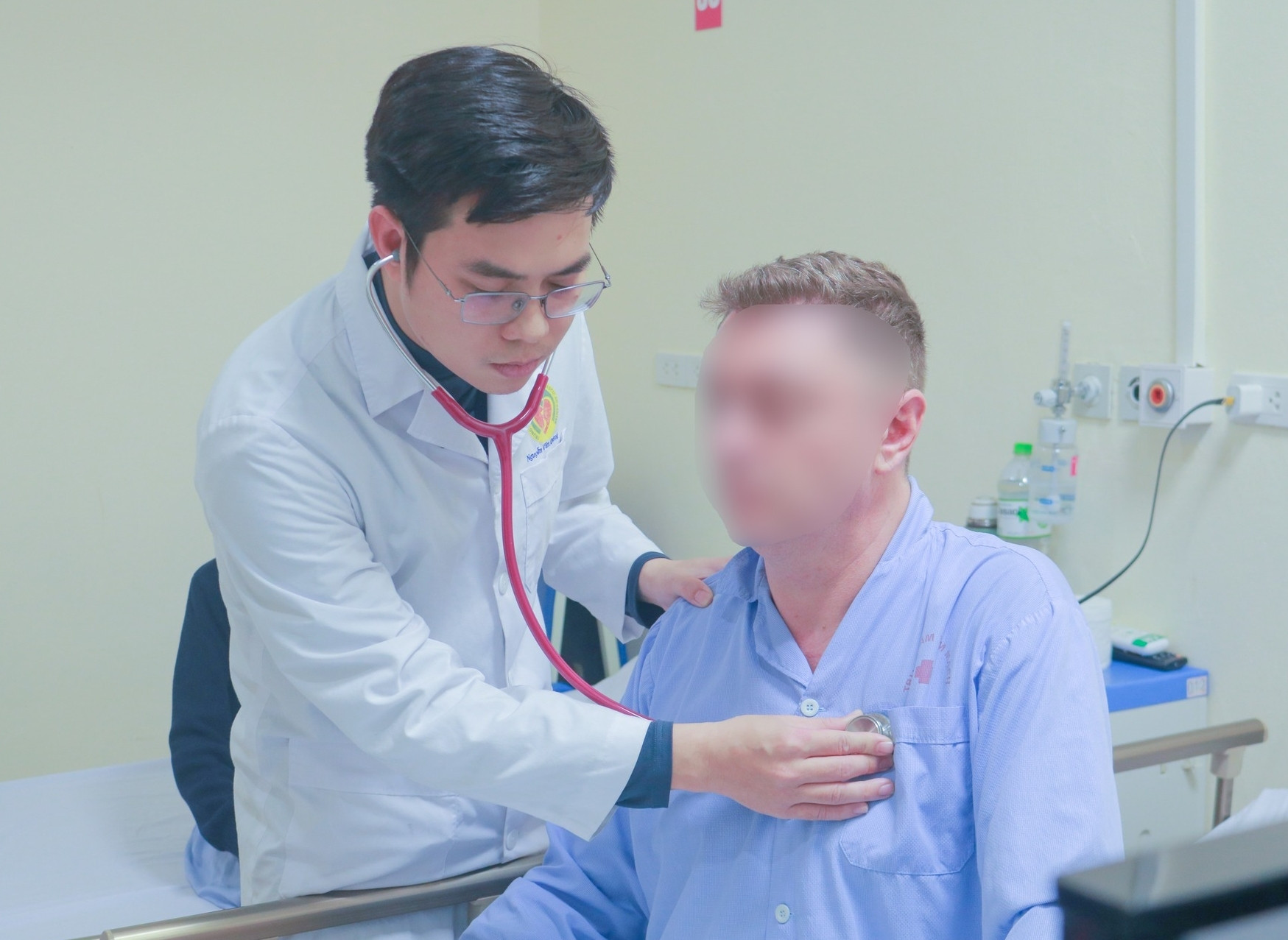 Kết quả điện tâm đồ và chụp mạch vành cho thấy người bệnh bị nhồi máu cơ tim cấp thành trước vách, tắc hoàn toàn động mạch liên thất trước đoạn II do huyết khối. Trước tình trạng nguy kịch, các bác sĩ can thiệp khẩn cấp hút huyết khối, tái thông mạch và đặt stent phủ thuốc.