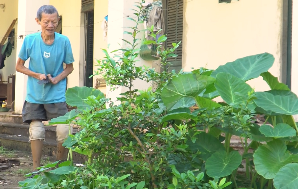 Ông Mai Văn Mùi di chuyển khó khăn với đôi chân tật nguyền.