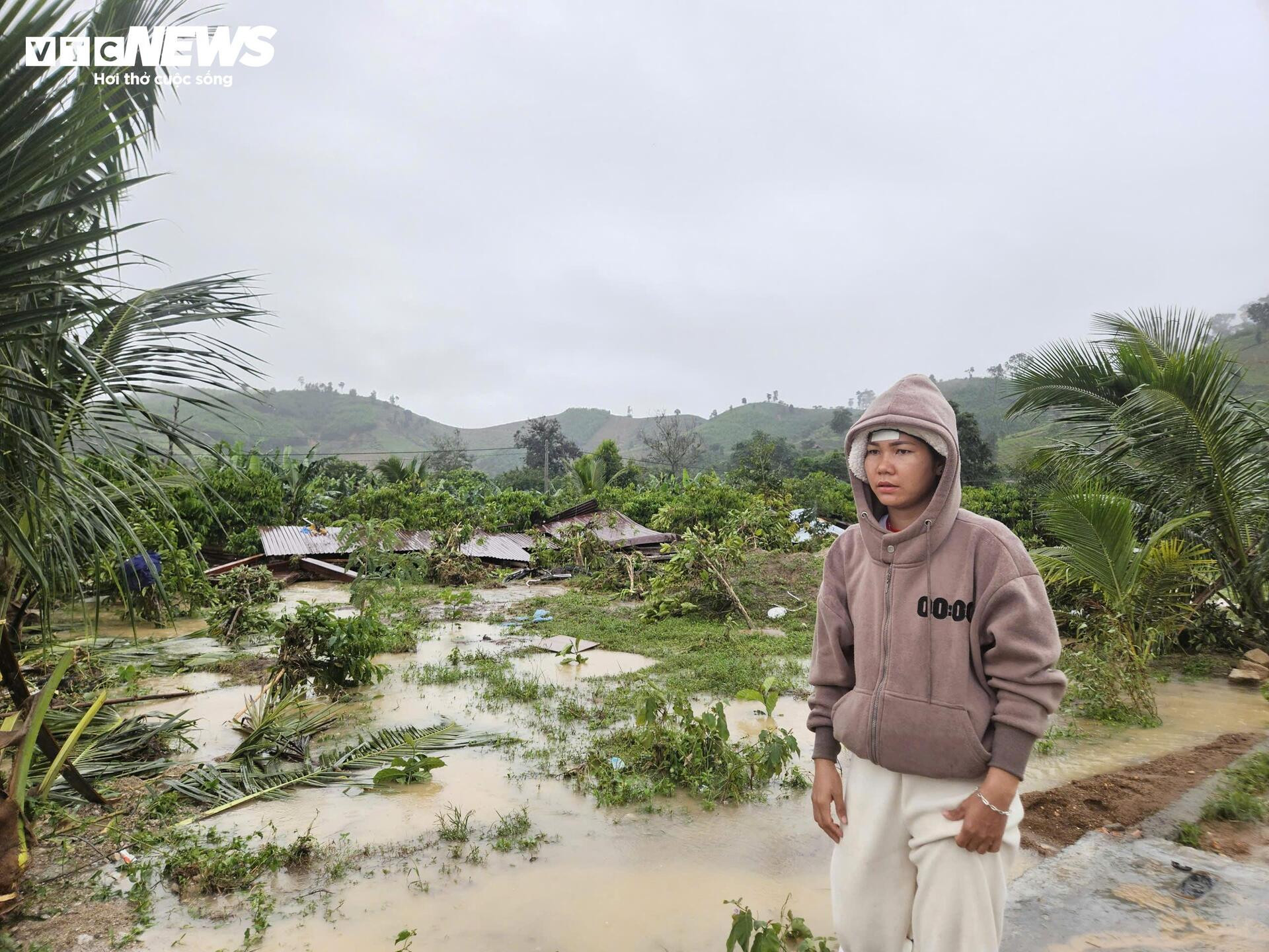 “Tiếng nước hôm đó… tôi không bao giờ quên được. Nó ầm ầm từ trên núi xuống như tiếng đổ sập của bức tường khổng lồ”, chị nói, đôi mắt hướng về dãy núi phía sau buôn.