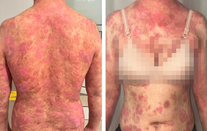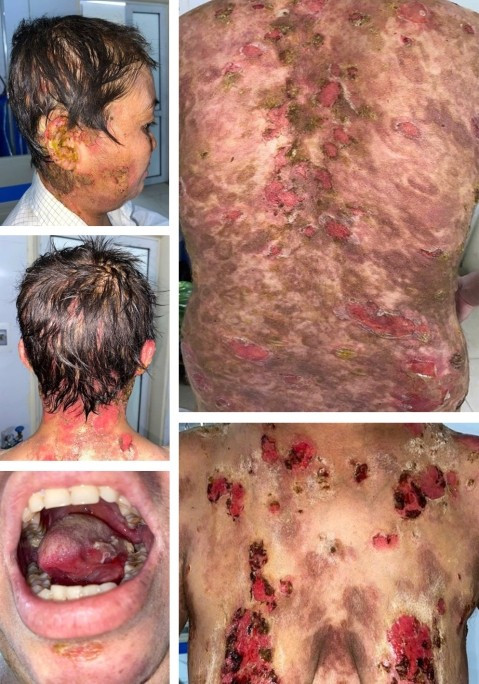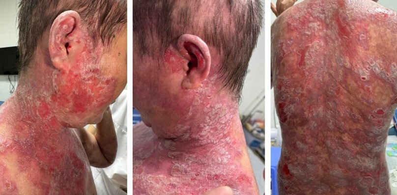 Bệnh nhân nữ T.M.G, 35 tuổi, nhập viện ngày 15/09 tại khoa Điều trị bệnh da phụ nữ và trẻ em, Bệnh viện Da liễu Trung ương trong tình trạng tổn thương bọng nước, trợt rộng tay chân thân mình.