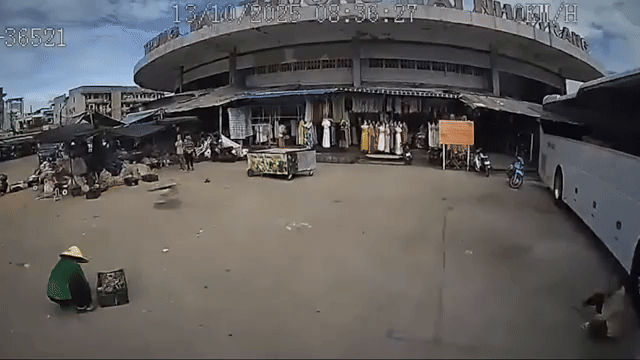 Khoảnh khắc người phụ nữ bị xe khách cán qua được camera an ninh ghi lại. Ảnh cắt từ clip/Nguồn: Tuấn Trần