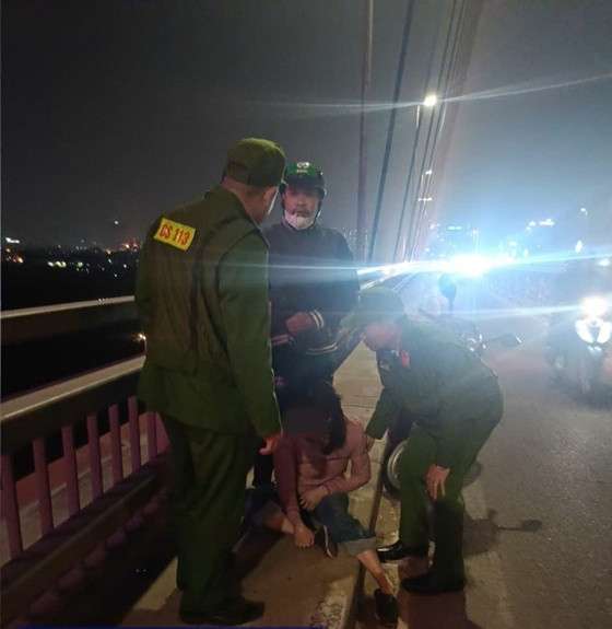 Lực lượng chức năng đã kịp thời ngăn chặn người phụ nữ có ý định tự tử. Ảnh: Công an TP Hà Nội