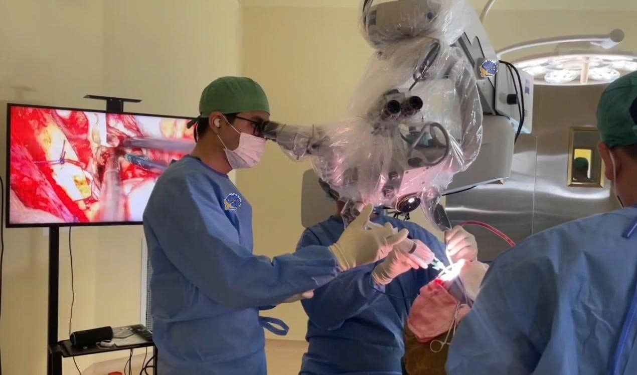 Ca mổ được triển khai dưới sự hỗ trợ của kính vi phẫu thuật hiện đại, thiết bị đóng vai trò như “đôi mắt thứ hai” của phẫu thuật viên trong những vùng não sâu và phức tạp, nơi ranh giới tổn thương không thể quan sát rõ bằng mắt thường.