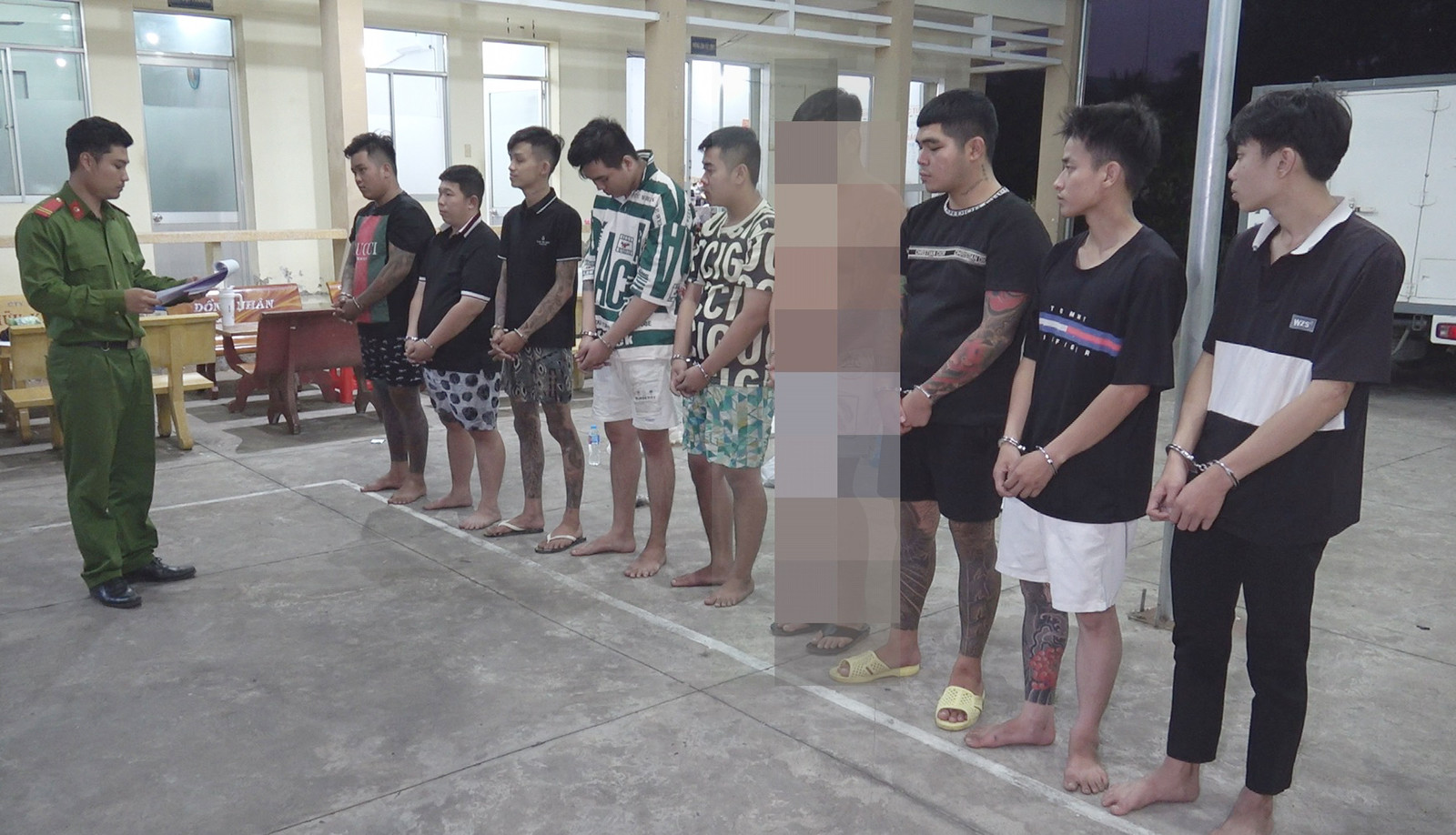 Cùng bị khởi tố, bắt tạm giam còn có 9 người gồm: Nguyễn Huỳnh Quốc Anh (21 tuổi), Huỳnh Gia Huy (25 tuổi), Nguyễn Hoàng Duy (21 tuổi), Huỳnh Anh Khoa (20 tuổi), Huỳnh Tấn Đạt (19 tuổi), Nguyễn Thành Thực (19 tuổi, cùng trú xã Bình Ninh) và Phạm Minh Phước (19 tuổi), Nguyễn Minh Duy (21 tuổi) và Văn Phát Đạt (42 tuổi, cùng trú xã An Thạnh Thủy).
