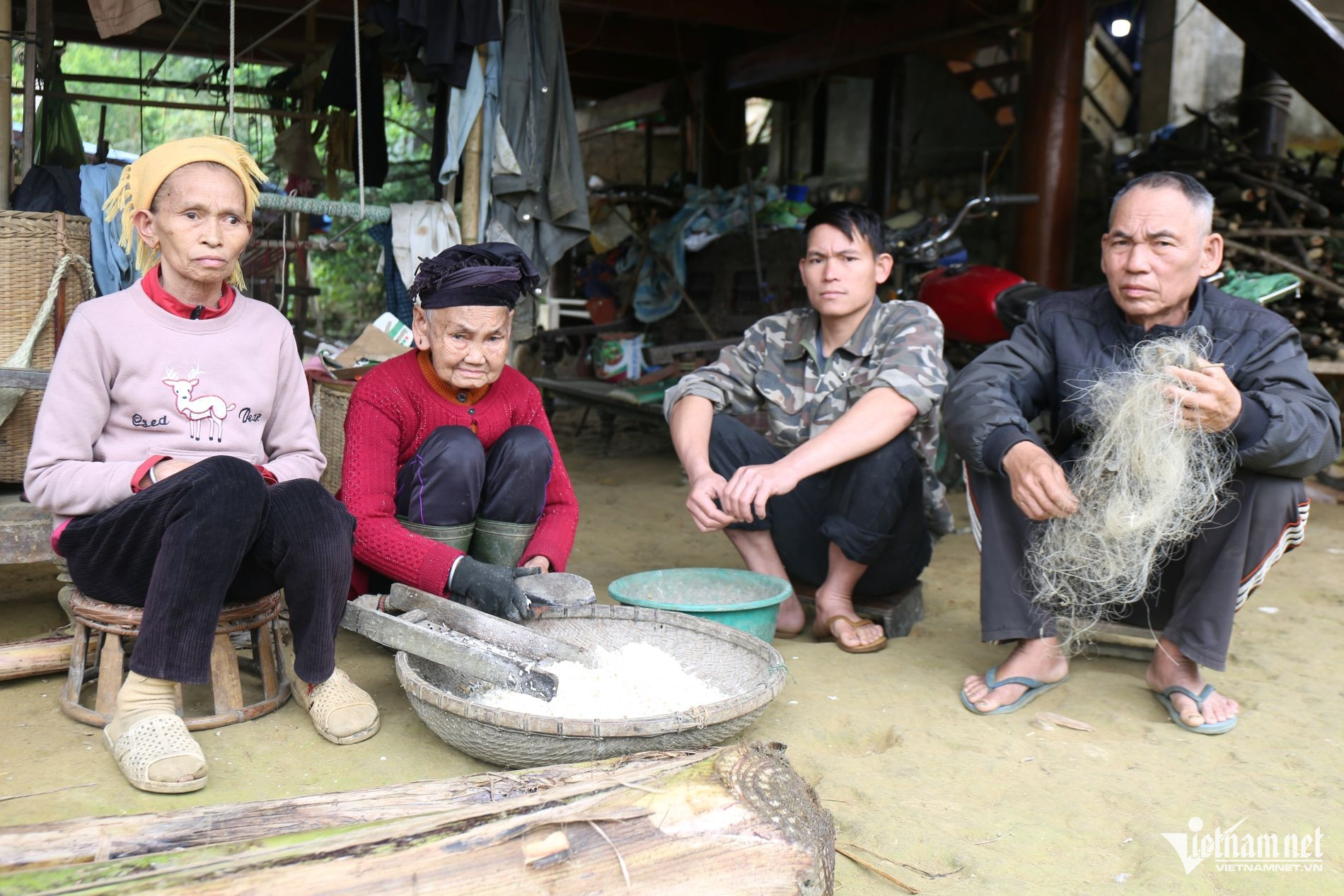 Từ trái sang phải: bà Vi Thị Thướng, bà Vi Thị Cảnh, anh Vi Văn Nàng và ông Vi Văn Hình. Ảnh: T.H