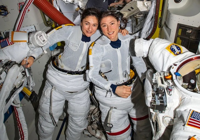 Bà Christina Koch cùng Jessica Meir thực hiện chuyến đi bộ ngoài không gian toàn nữ đầu tiên vào tháng 10/2019