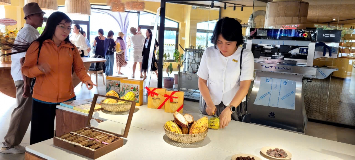 Trong năm qua, doanh nghiệp đã tiêu thụ hơn 60 tấn hạt ca cao của nông dân để chế biến các sản phẩm sôcôla. Đặc biệt, có 16 sản phẩm được công nhận OCOP, trong đó có 14 sản phẩm đạt 4 sao và 2 sản phẩm đạt 5 sao (bột ca cao và hạt ca cao).