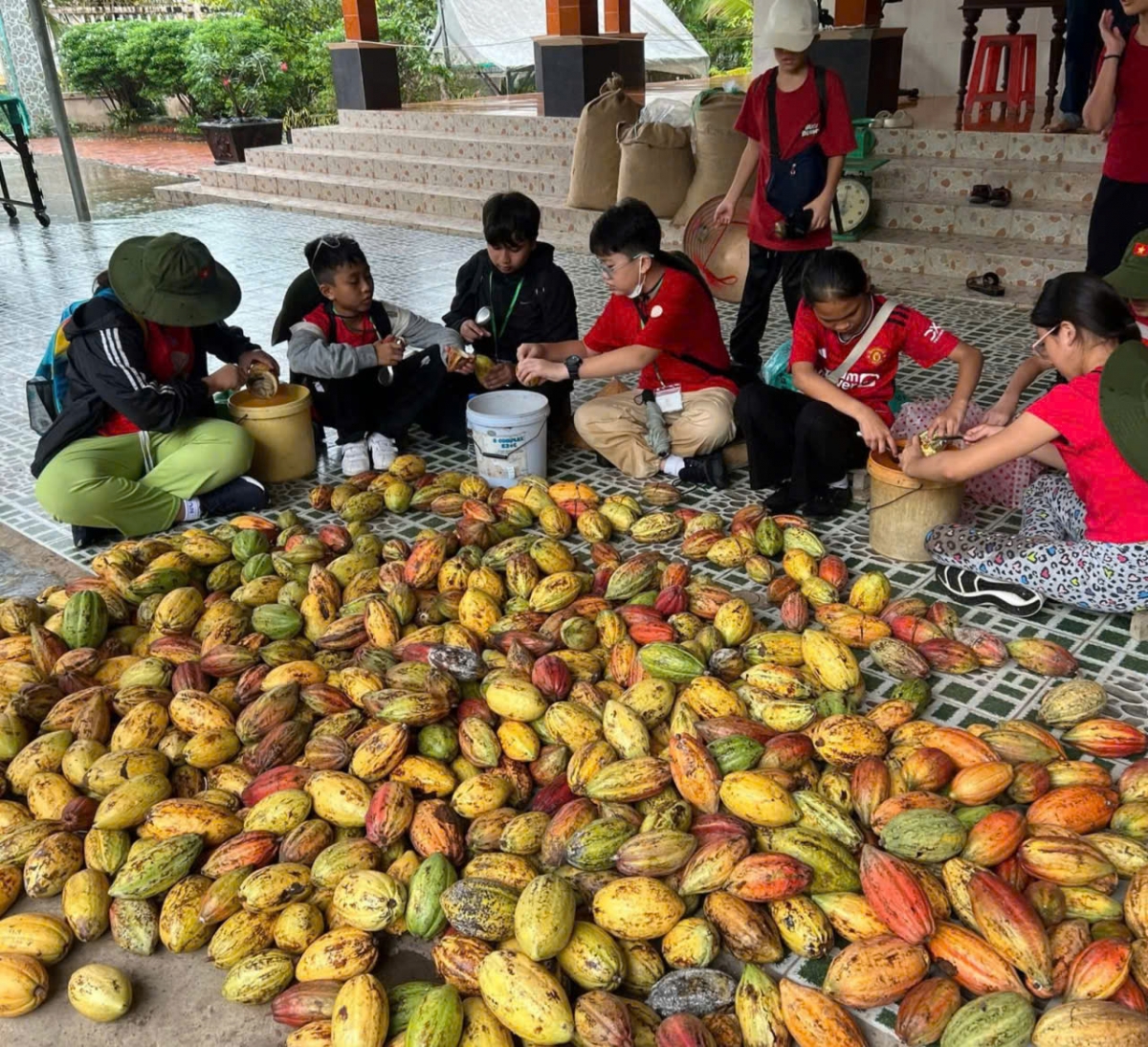 Các em thiếu nhi đến tham quan, trải nghiệm và thưởng thức sản phẩm Alluvia Chocolatier