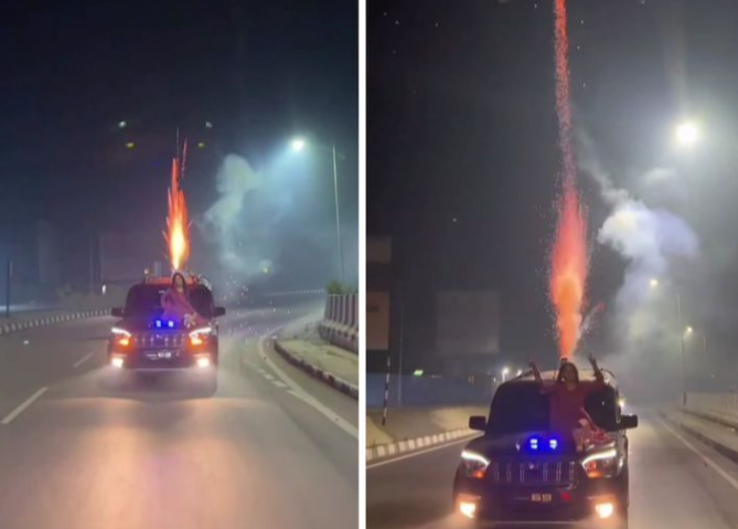 Trong đoạn video, một chiếc xe SUV di chuyển trên đường công cộng với cảnh người phụ nữ ngồi trên nắp capo và pháo hóa được bắn ngay phía sau, từ nóc chiếc xe. Toàn bộ sự việc được một xe khác đi phía trước quay lại. Thời điểm này, nhiều phương tiện khác vẫn lưu thông xung quanh khiến người xem không khỏi bức xúc vì nguy cơ tai nạn cao.