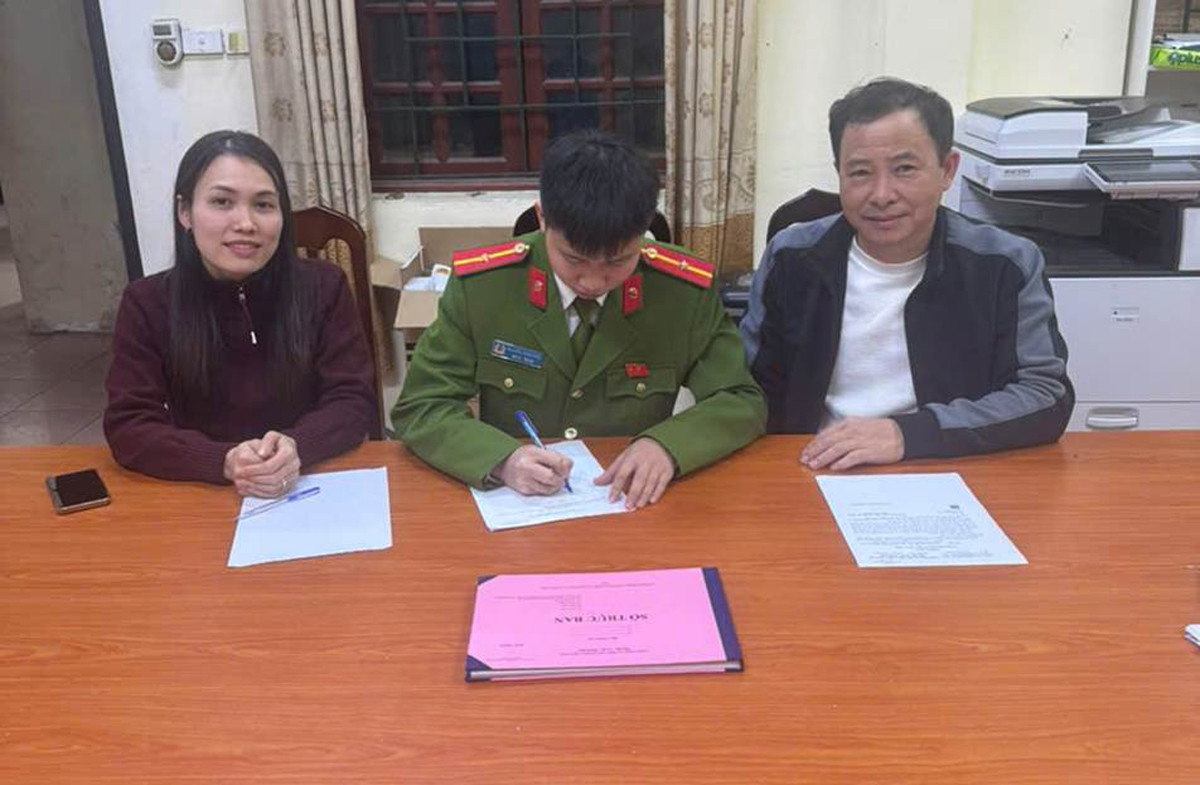 Công an xã tiếp nhận thông tin trình báo của chị Hà Thị Kim Thoa. Ảnh: CACC