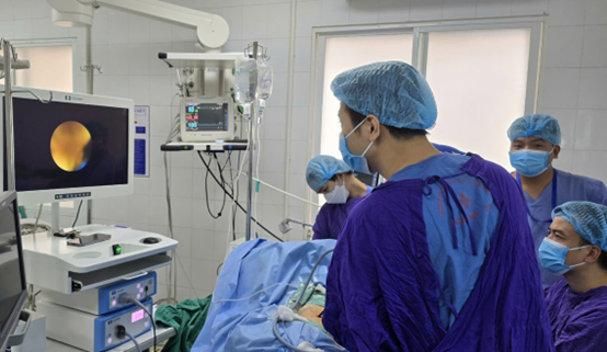 Ê-kíp phẫu thuật đã tiến hành nội soi niệu quản tán sỏi bằng Laser, rút Sonde JJ cũ tồn tại 15 năm và thay Sonde JJ mới; nội soi tán sỏi qua da thận trái để xử lý toàn bộ sỏi thận. Ca phẫu thuật diễn ra thành công. Bệnh nhân sạch sỏi, ổn định sau mổ và được xuất viện chỉ sau 3 ngày.